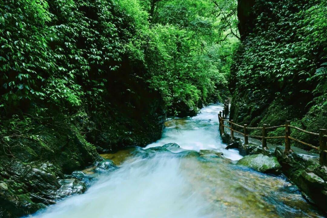山中的石门峡堪称“哀牢第一奇峡”,峡谷内峭壁如削,溪水潺潺,碧潭相连,步道沿溪而建,穿行其间,时而需攀援栈道,时而需涉水而过,藤条垂吊、古木遮天,每一步都能邂逅不一样的景致。