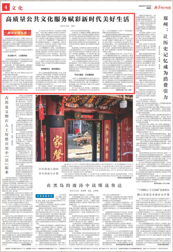 数字化普惠助力文化下沉。2025年4月,“中华古籍智慧化服务平台”上线试运行,整合国家图书馆和各地古籍收藏单位的万余种古籍数字化资源,汇聚“古籍里的黄河”“百部经典”“山海经”等多个特色专题,为广大读者提供开放共享的古籍资源和便捷高效的智慧服务。2025年文化馆服务宣传周以“让文化馆成为人民的终身美育学校”为主题,开展“我与文化馆”短视频征集等活动,线上线下服务群众超1.42亿人次。如专家所说,资源跟着需求走,才能在云端和田野都种下文化的种子。