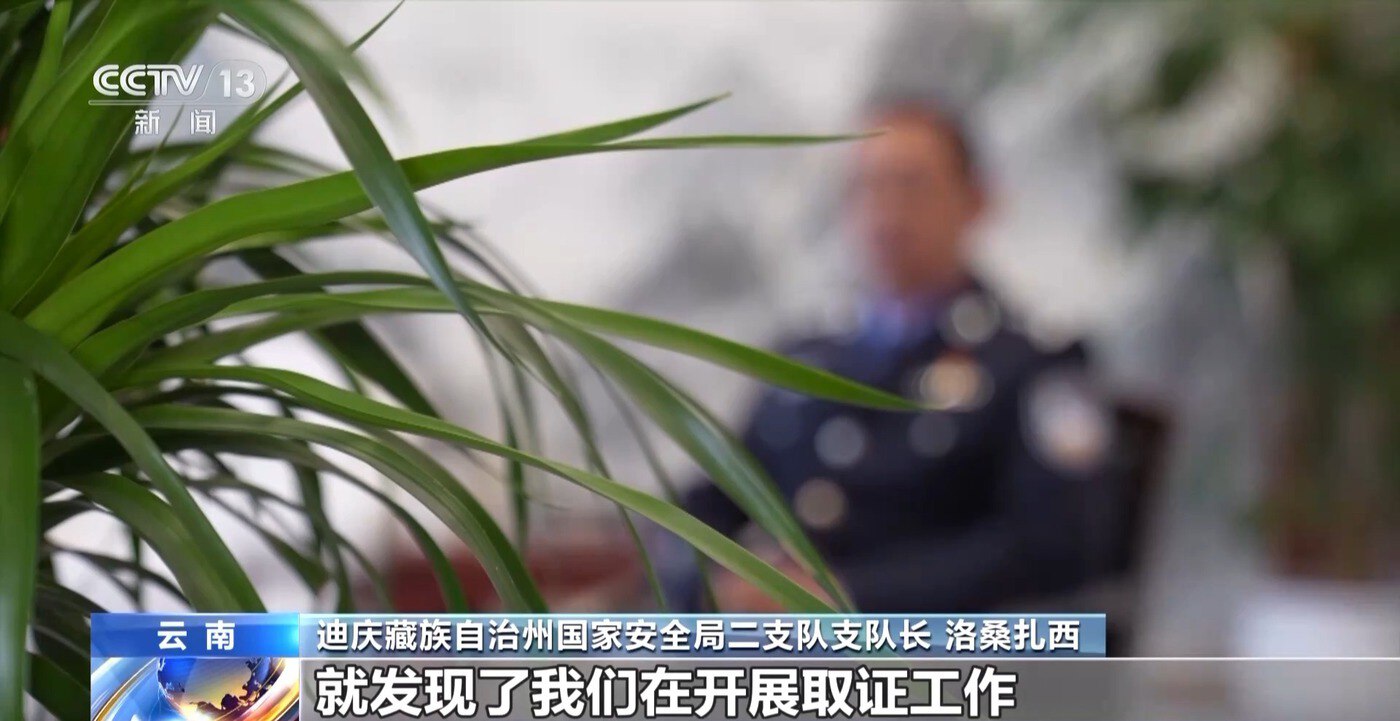 迪庆藏族自治州国家安全局二支队支队长 洛桑扎西:组织的头目突然转身,发现了我们在开展取证工作。我马上联系跟我一起来的两个同事,让他们快点迂回过来以后,让他们来到我的背后,把取证的摄像机交给他们先行撤退,我再跟他们周旋一下。