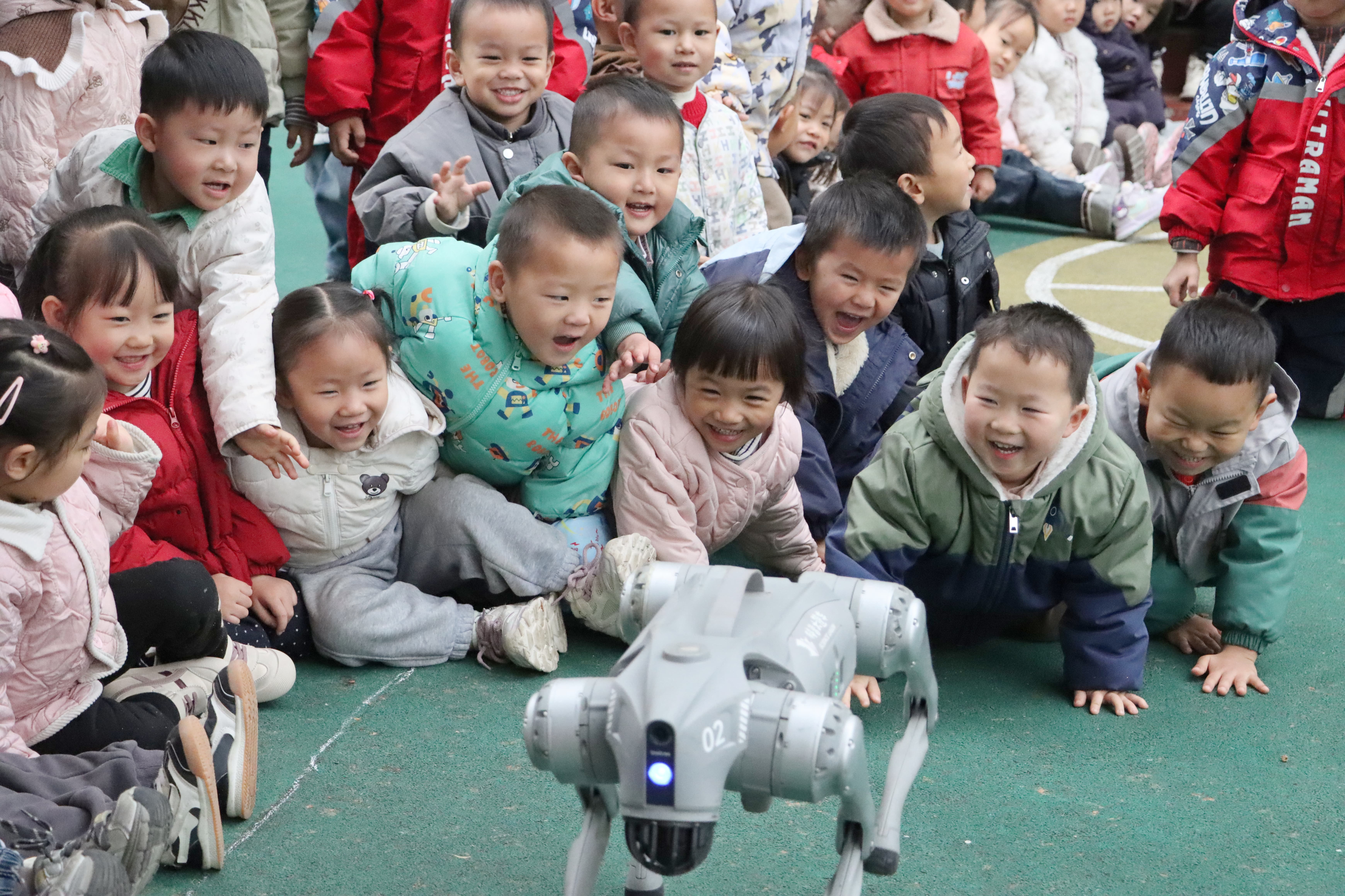 活动现场,机器狗表演、VR眼镜体验、天文望远镜、益智游戏等科普展品的展示迅速吸引了大家的目光。现场惊叹声、欢笑声此起彼伏,洋溢着浓厚的科学探索氛围。伴随着灵活的步伐和翻滚动作,机器狗一登场就成了全场的焦点。在科普工作人员熟练地操作下,它不仅展示了精准的工作控制,还和小朋友进行趣味互动,引得孩子们发出阵阵惊叹声和欢呼声,同时让孩子们近距离体验和感受科学的魅力。