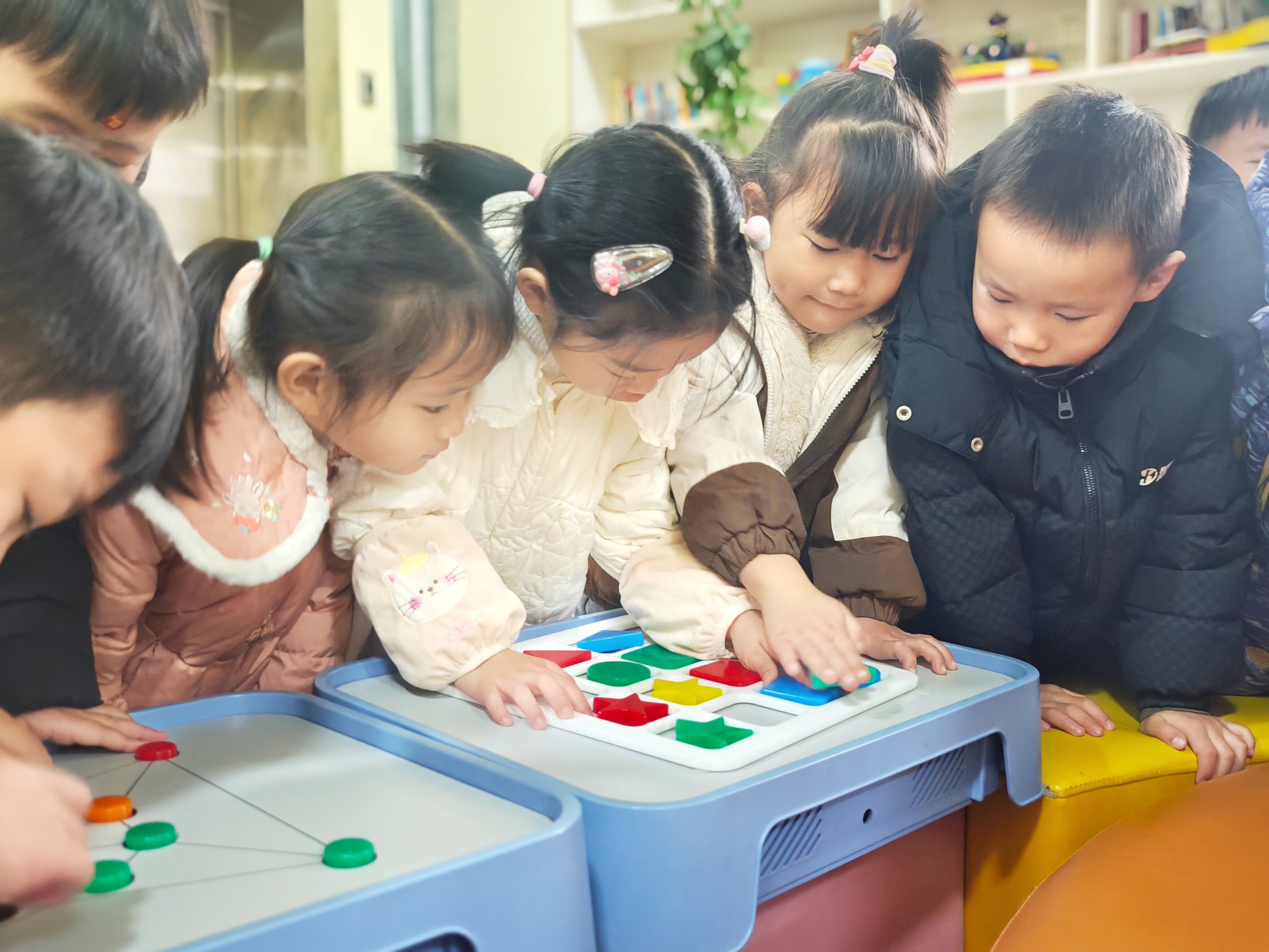 在益智游戏区,种类丰富、设计巧妙的操作材料激发了孩子们强烈的兴趣。小朋友们专注摆弄,反复尝试,在动手动脑过程中感受逻辑与创造的乐趣。VR眼镜体验区则带来了一场沉浸式的奇幻之旅。戴上设备,一个立体的、可交互的虚拟世界便呈现在眼前,这种沉浸式的体验让大家直观地感受到科技的魅力。