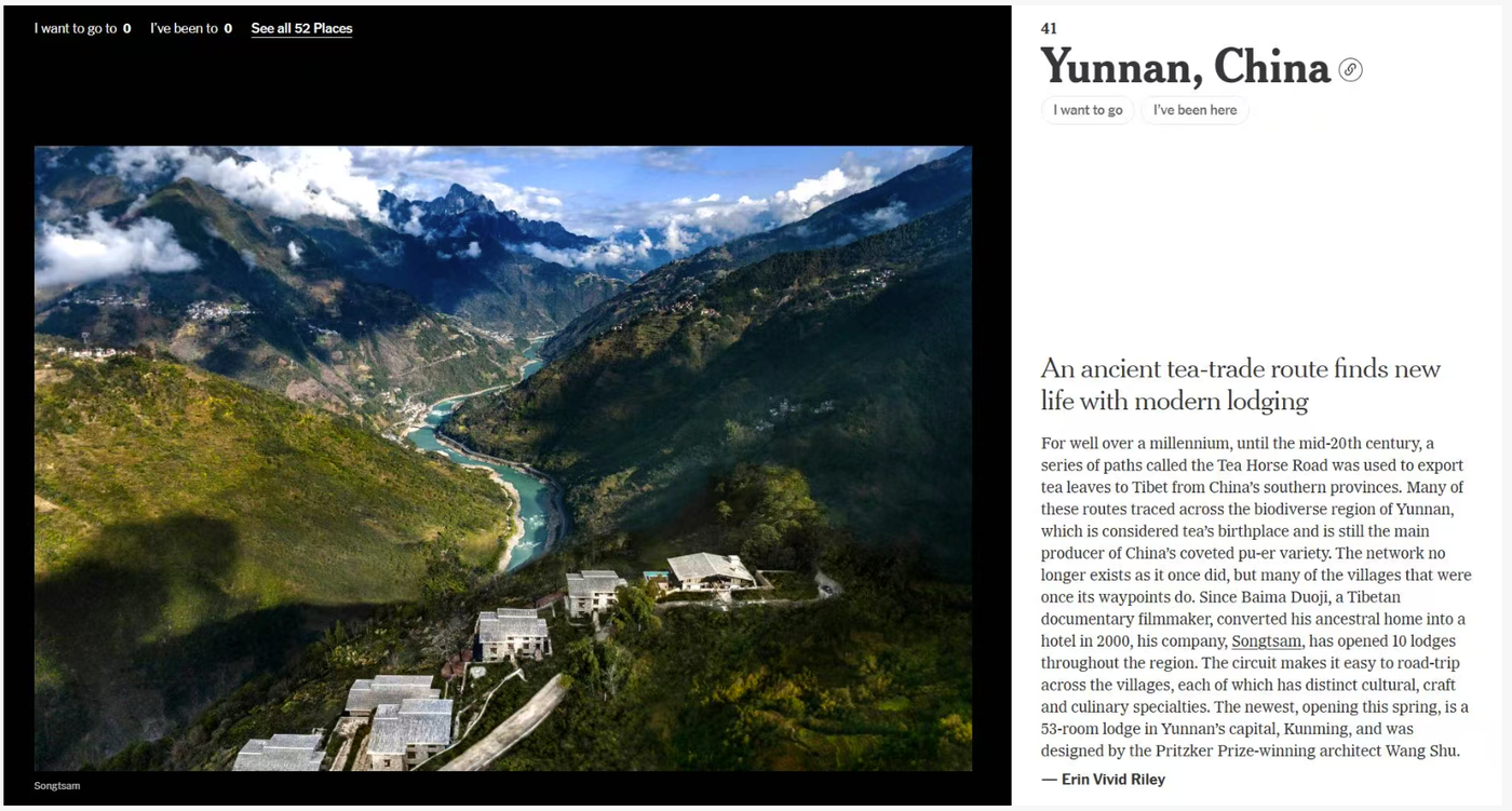 《纽约时报》日前发布2026年“52个最值得去的地方”榜单,云南因“古老茶叶贸易路线因现代旅行方式焕发新生”而入选。这不仅是对云南自然与人文魅力的认可,更是对一种全新旅行理念的回应。在这里,千年古道不再只是历史遗迹,而是成为连接茶、路、人与当代生活的鲜活叙事。