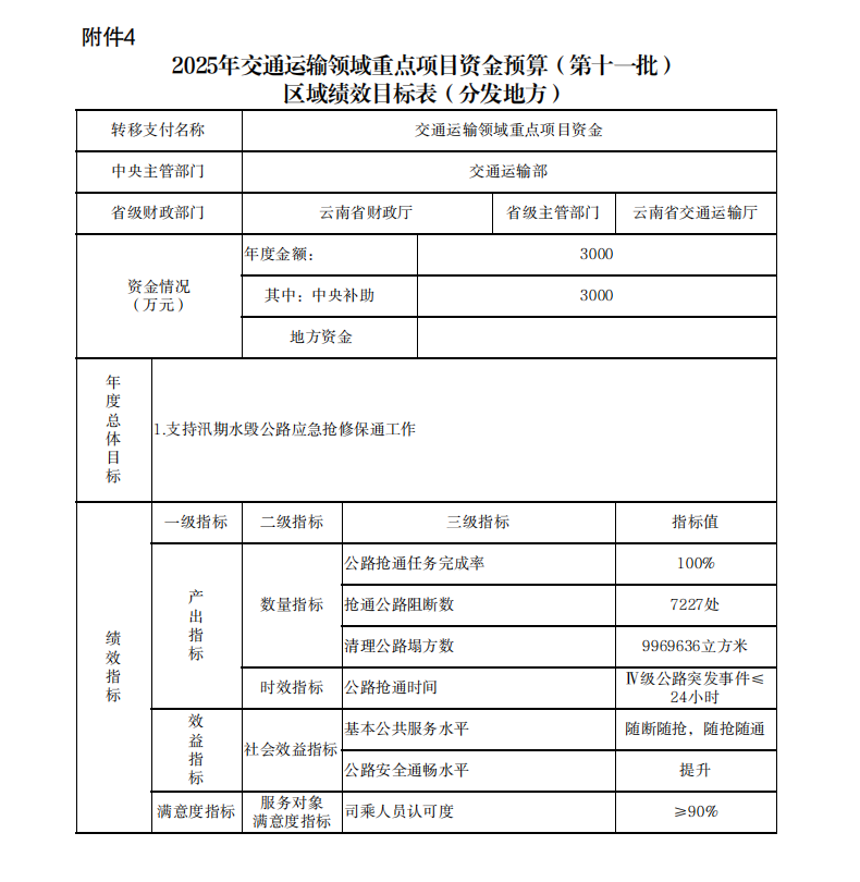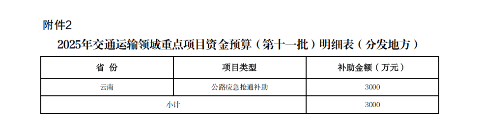 原标题:云南获补助金额3000万元!2025年交通运输领域重点项目资金预算下达