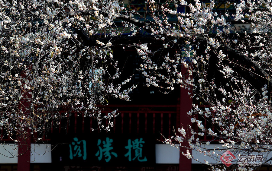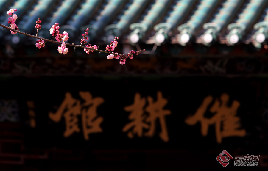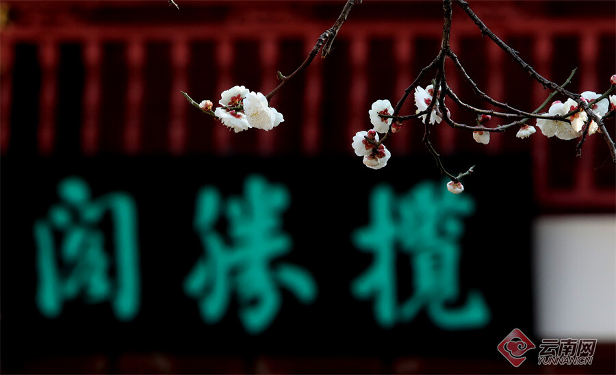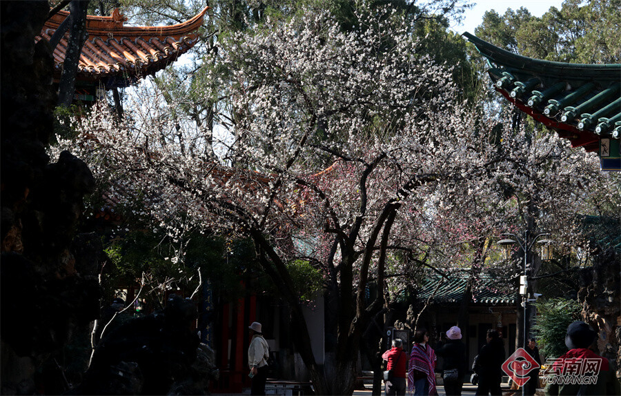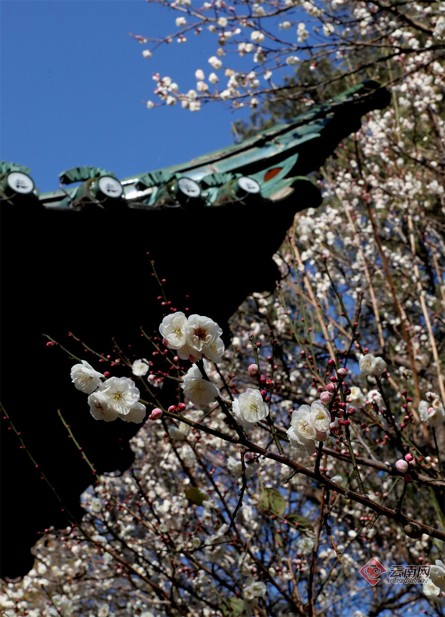 原标题:昆明大观公园:梅开一枝春 古建映梅香
