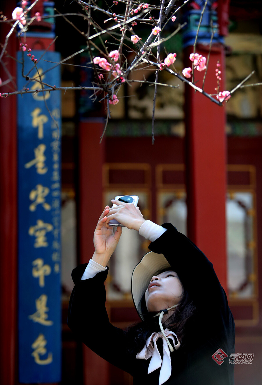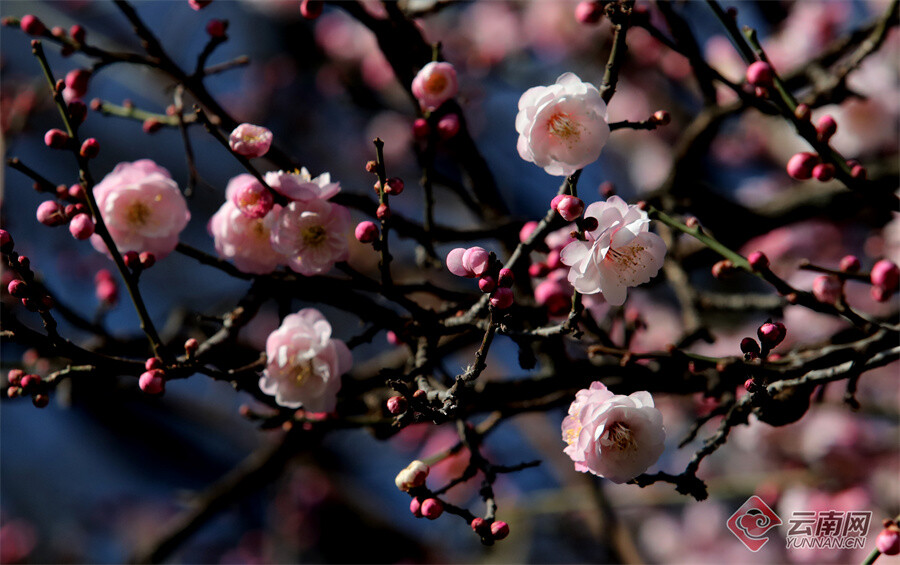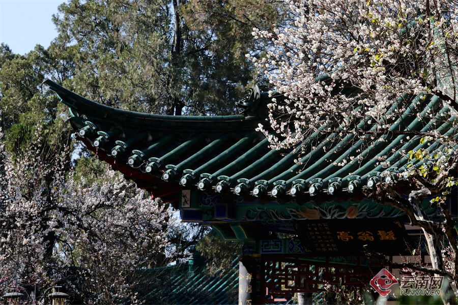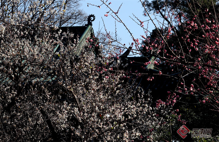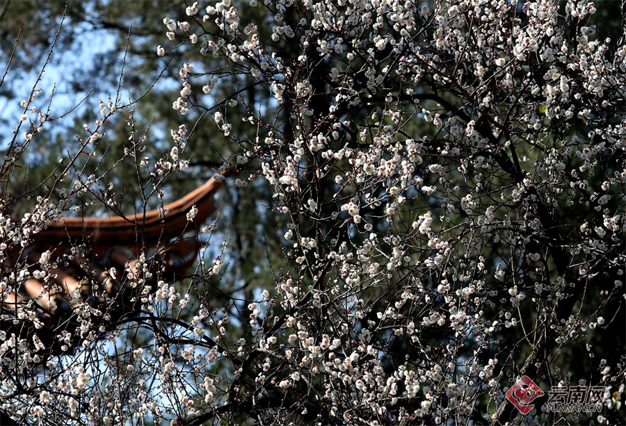 原标题:昆明大观公园:梅开一枝春 古建映梅香