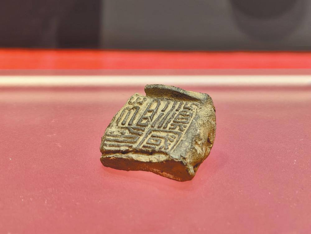 晋宁河泊所遗址出土的“滇国相印”封泥。 记者 刘薇薇 摄