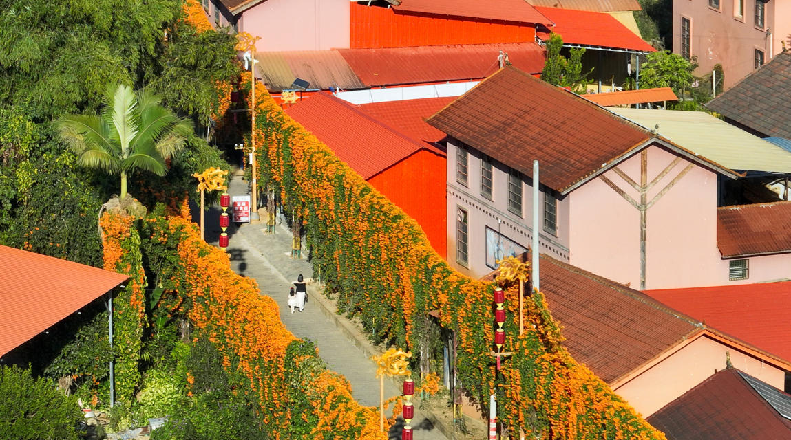 龙安村委会的炮仗花开得格外热烈