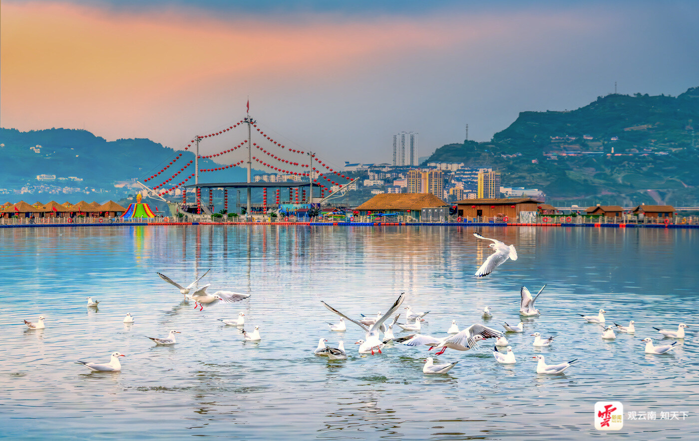 红嘴鸥正在江面自由嬉戏(资料图)。曾三东 摄
