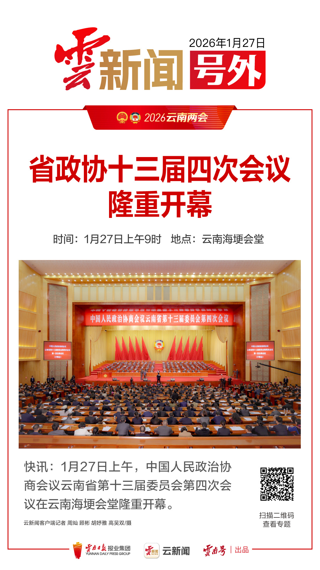 原标题:快讯!云南省第十四届人民代表大会第四次会议开幕
