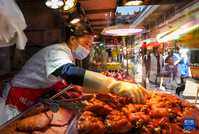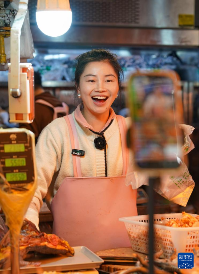 1月27日,一名摊主在昆明大观篆新农贸市场内售卖卤味。新华社记者 陈欣波 摄