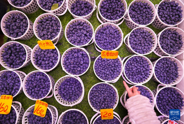 这是1月27日在昆明大观篆新农贸市场内拍摄的蓝莓。新华社记者 陈欣波 摄