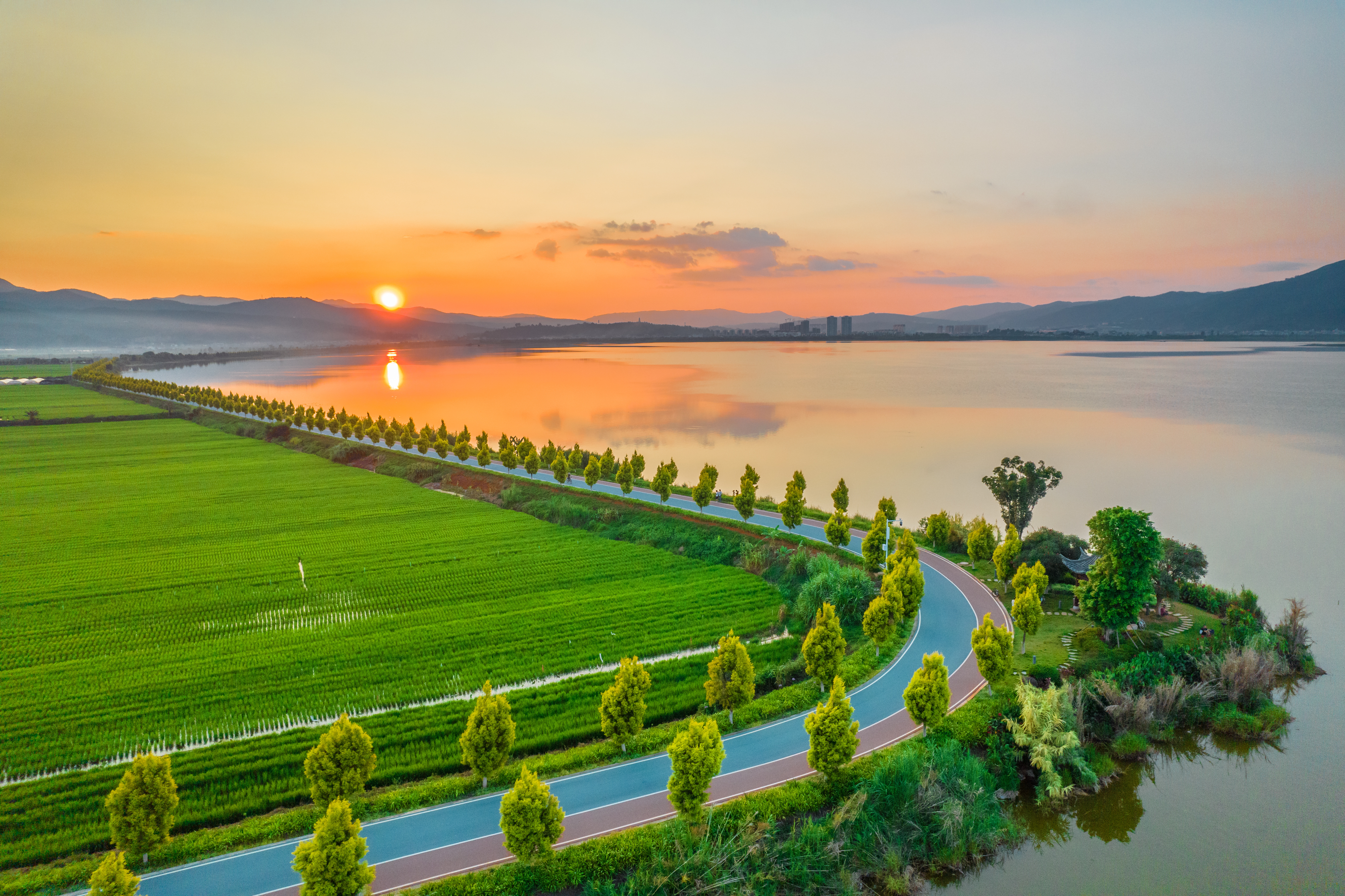 夕阳西下,晚霞映红了天边,清澈宁静的异龙湖更加魅力十足。坐在村口,远眺湖光山色的73岁坝心镇居民李四代忍不住感叹道:“好多年没看到这么清、这么美的湖水了!”