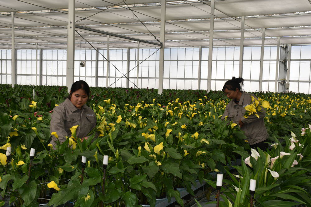 作为全国最大的彩色马蹄莲种植基地,丽江现代花卉产业园内一片忙碌景象。温室大棚里,红、黄、黑等色系的彩色马蹄莲挺拔秀丽,花农们正忙着采摘、分拣、打包,将带着晨露的鲜切花运往全国各地。得益于“马蹄”与马年的生肖关联,这款被赋予“马踏福来”美好寓意的花卉,成为今年年宵花市场的“宠儿”。