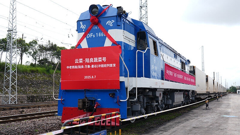 2025年8月7日上午,伴随着汽笛长鸣,搭载10个集装箱,出口量达260吨的首列满载“陆良蔬菜”冷链班列从云南省曲靖市陆良县首发奔赴泰国曼谷,为当地消费者送去新鲜的彩云之南味蕾盛宴。