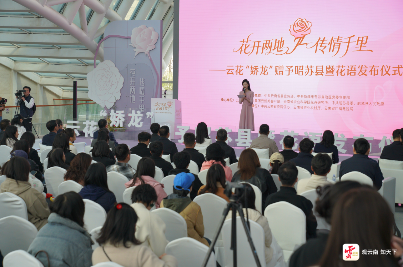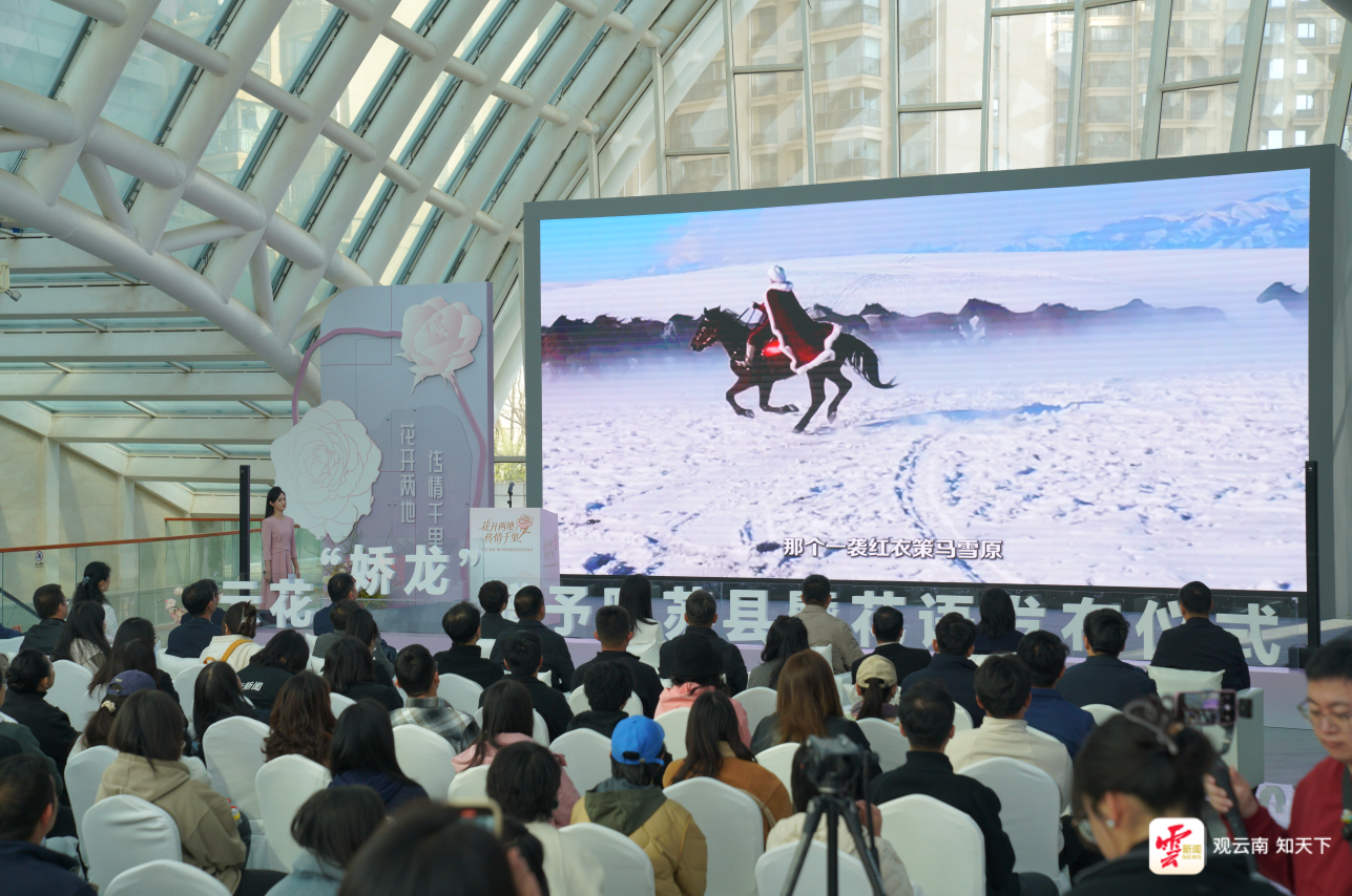 原标题:云新闻现场丨“花开两地 传情千里”——云花“娇龙”赠予昭苏县暨花语发布仪式在昆明举行