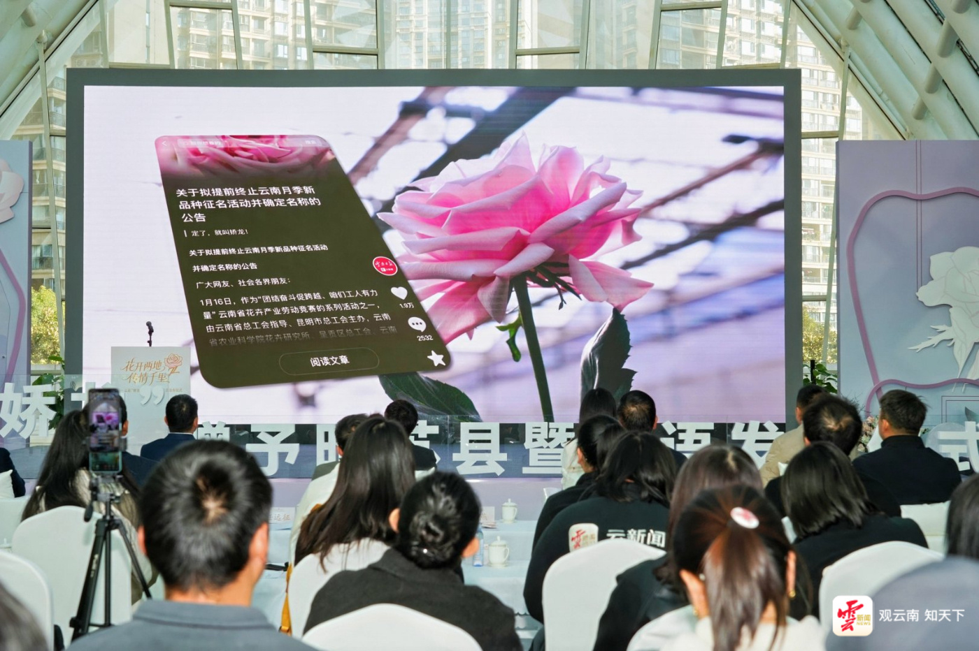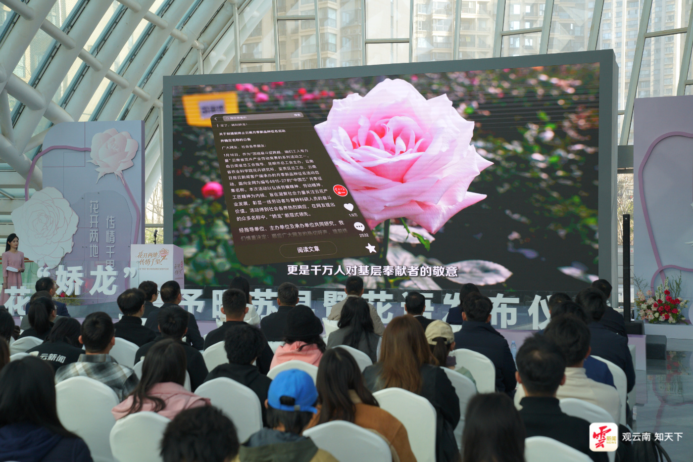 今天上午10时,“花开两地 传情千里”——云花“娇龙”赠予昭苏县暨花语发布仪式在云南日报报业集团举行。昭苏县代表及贺娇龙同志亲属专程前来参加了此次活动。仪式上,云南省农业科学院花卉研究所育种团队负责人将“娇龙”月季郑重交接给昭苏县代表。