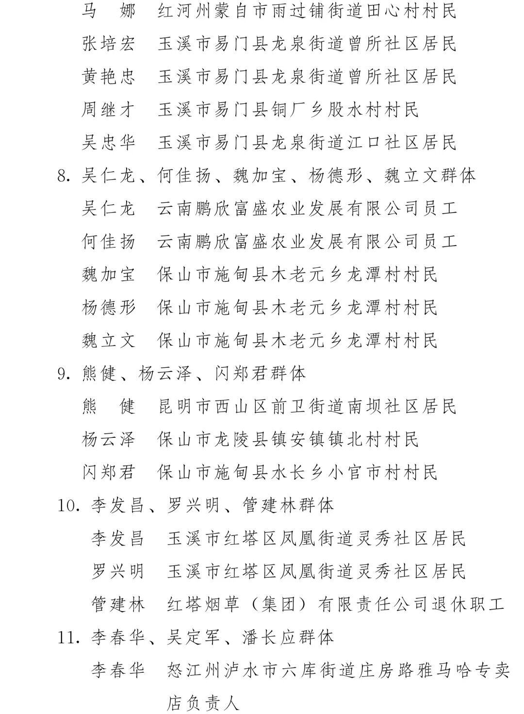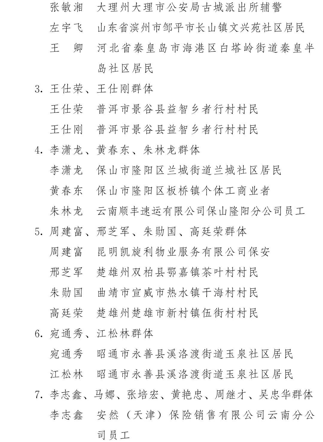 附件:2024—2025年云南省见义勇为群(集)体和个人名单