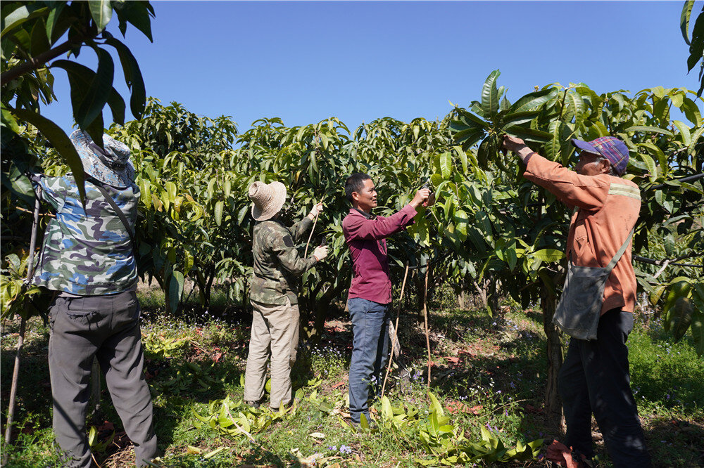 这种与时间赛跑的智慧,在高海拔山区体现得更为突出。中心镇田坪村村民钟腾平去年12月才卖完最后一批晚熟芒果,“我们这儿海拔比坝区高不少,昼夜温差大,果子能再晚熟1个多月,正好打个时间差。”麻利搭建芒果支撑架的他,已然投入新一轮管护,2025年,他家200亩芒果总产量超15万公斤,收入超110万元,而晚熟品种正是收益的主力军。