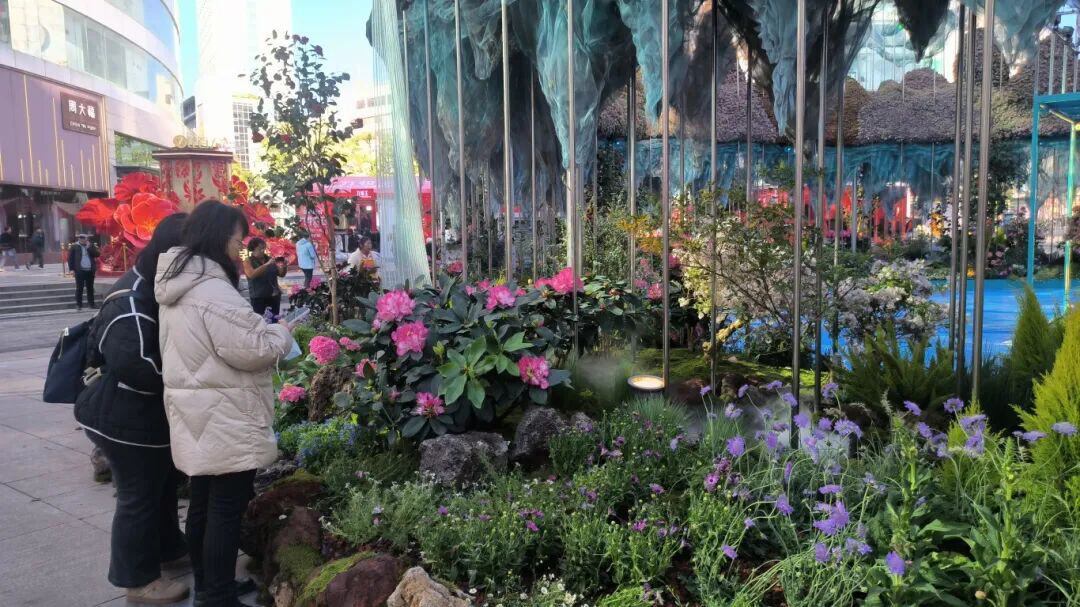 2月11日,一座9.9米高、占地2000平方米的“观山观水观春城”花雕正式在南屏步行街亮相,三层山峰叠翠+碧水环绕,搭配光影装置和缤纷花卉,远观气势恢宏、近赏细节精致,还能互动打卡,妥妥的新年网红地标,很快就吸引众多市民驻足围观,拍照观赏。
