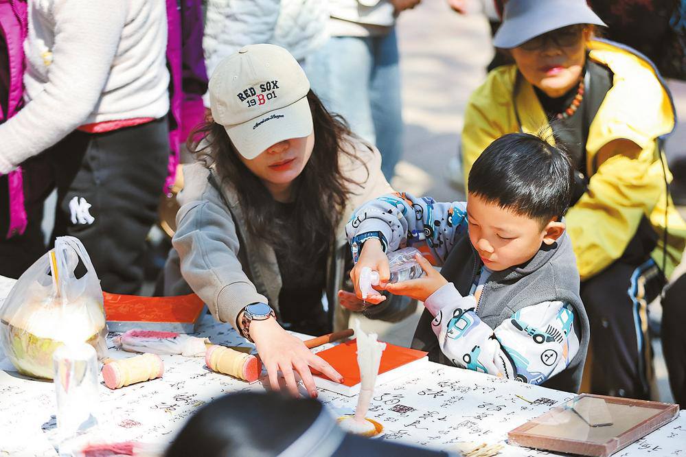 大年初二,游客在昆明金殿庙会上体验非遗技艺。本报记者 陈飞 摄