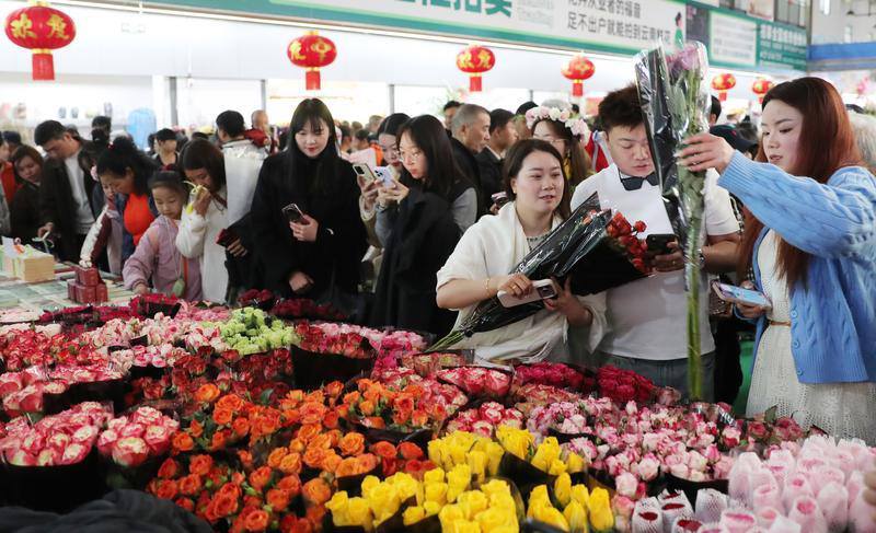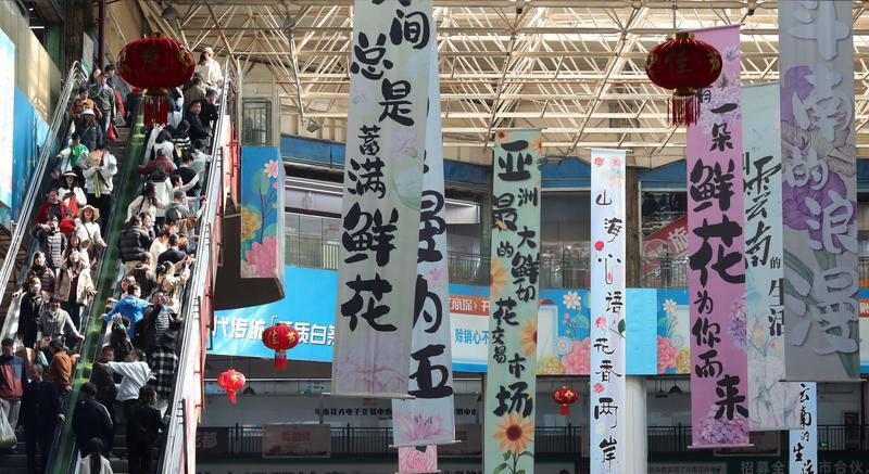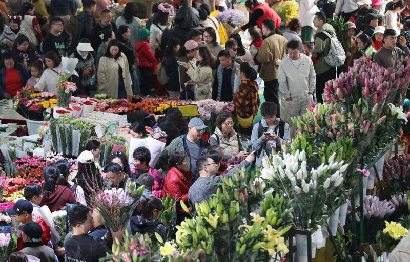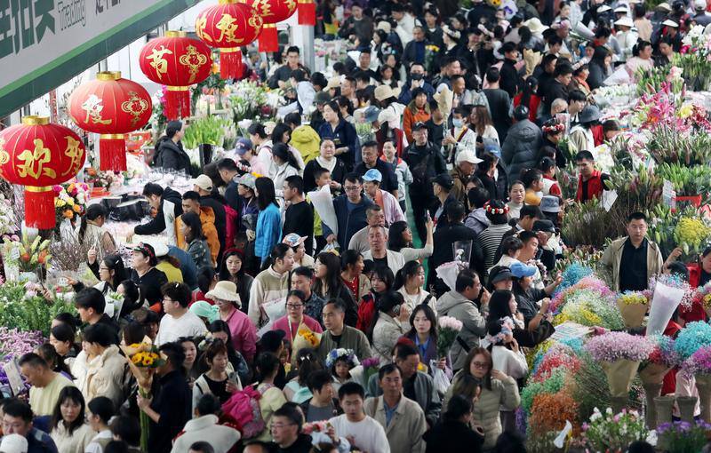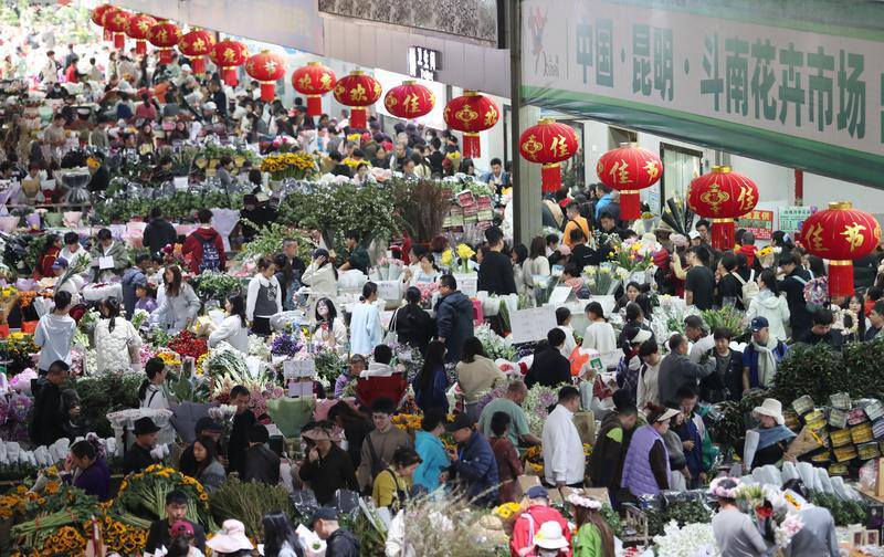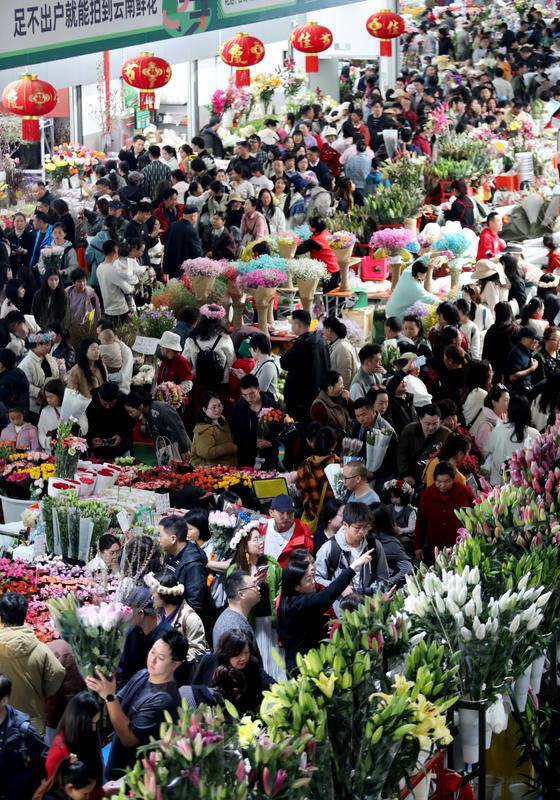春节假期,昆明斗南花市人潮涌动,鲜花销售红火,吸引全国各地的游客前来赏花购花,感受“亚洲花都”的花样新春。