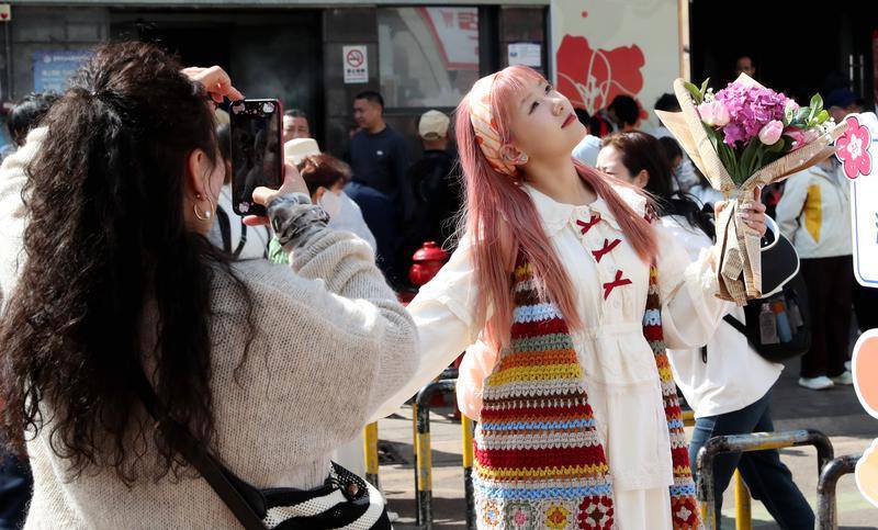 省外游客在斗南花市打卡拍照,留下春天的美好记忆。