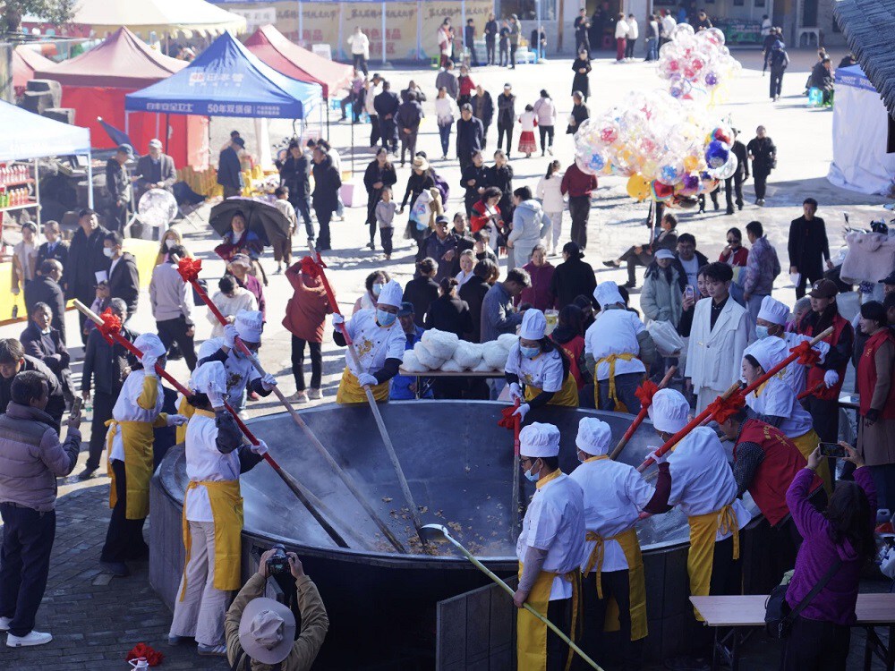 在腾越街道“中国饵丝第一村”,上百名游客参与舂粑粑体验,刚出炉的粑粑蘸上特色酱料,满口都是烟火气息。