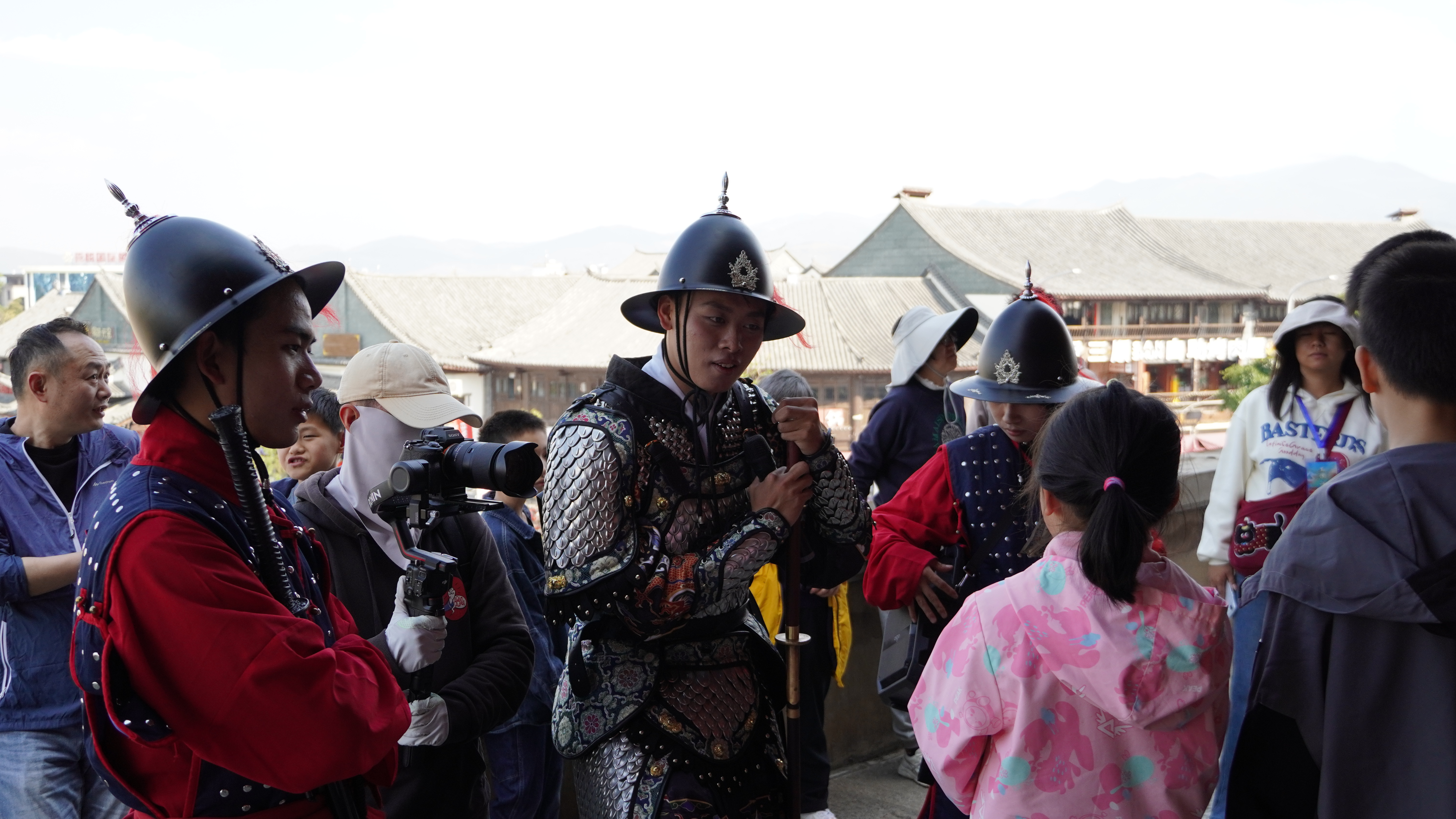 来自玉溪师范学院的陈俊葛成功应聘“临安卫”角色,身着千户甲胄,一边与游客热情互动,一边细致地讲解临安卫的历史典故。“今天穿上这身甲,感觉肩上承担起了独特的使命。作为00后,身穿甲胄可以向游客讲解建水的历史、传递建水的文化,我觉得非常自豪。”陈俊葛说。