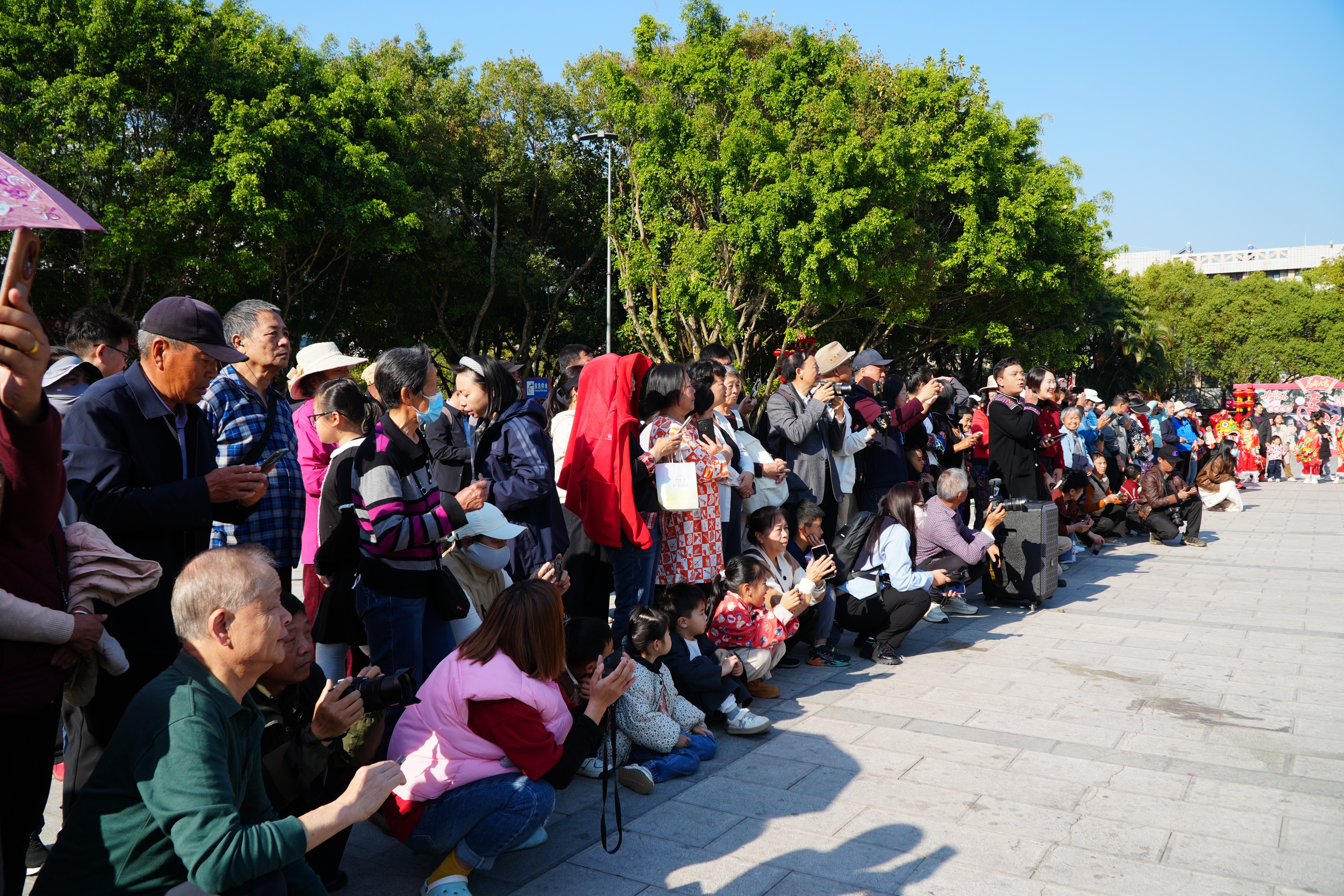 当表演队伍抵达世纪广场,一场精彩纷呈的民俗盛宴正式上演。舞龙翻腾气势如虹,醒狮跳跃灵动威武,秧歌舞轻盈欢快、腰鼓舞铿锵有力,一个个热闹十足的节目轮番登场,将现场气氛一次次推向高潮。市民和游客们围满了表演场地,目不转睛地欣赏着每一个精彩瞬间,纷纷举起手机、相机定格美好画面,大家沉浸在浓浓的年味里,与表演者一同闹新春、享年趣,真切感受着中华优秀传统文化的独特魅力。
