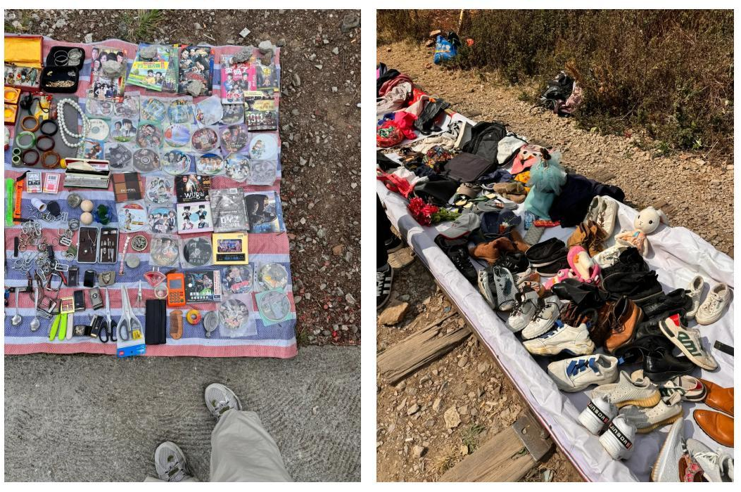 逛完了菜街子,还可以沿着铁路集市逛逛,大大小小的物品摆放在铁轨上,旧货、书籍、家电、日用品都在卖,主打一个闲置品展示,别有一番怀旧情调。