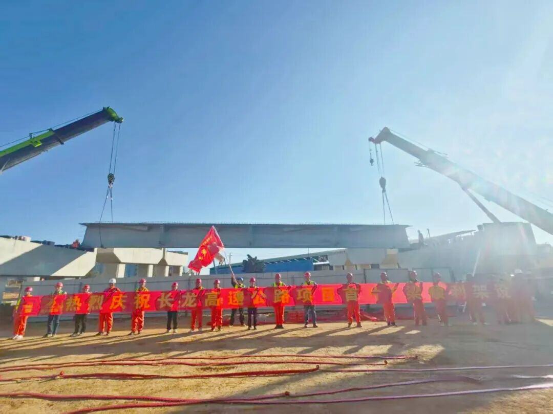 近日,昆明长水机场至双龙高速公路工程大板桥特大桥施工现场,随着现场指挥员下达指令,首片T梁被平稳吊起并精准安放至预定桥墩,顺利完成架设作业。