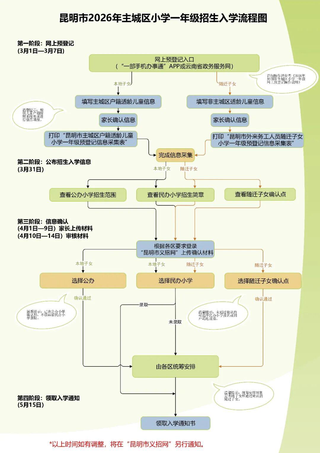 1.2026年昆明市主城区小学一年级入学预登记时间是什么时候?网址是什么?
