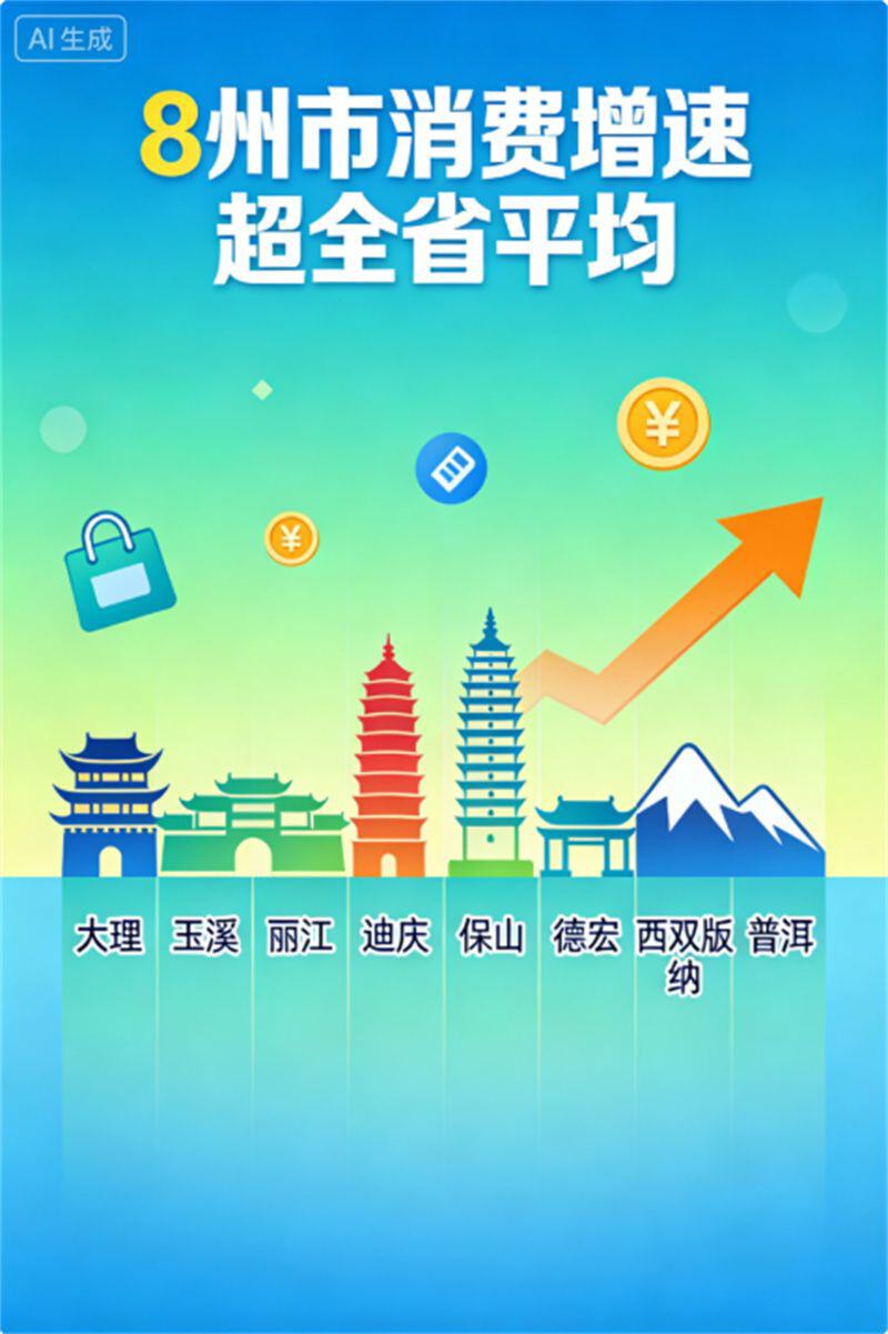 全省16个州市中,大理、玉溪、丽江、迪庆、保山、德宏、西双版纳、普洱等8个地区的本地生活服务消费增速高于全省平均水平,展现出区域文旅发展的均衡与活力。