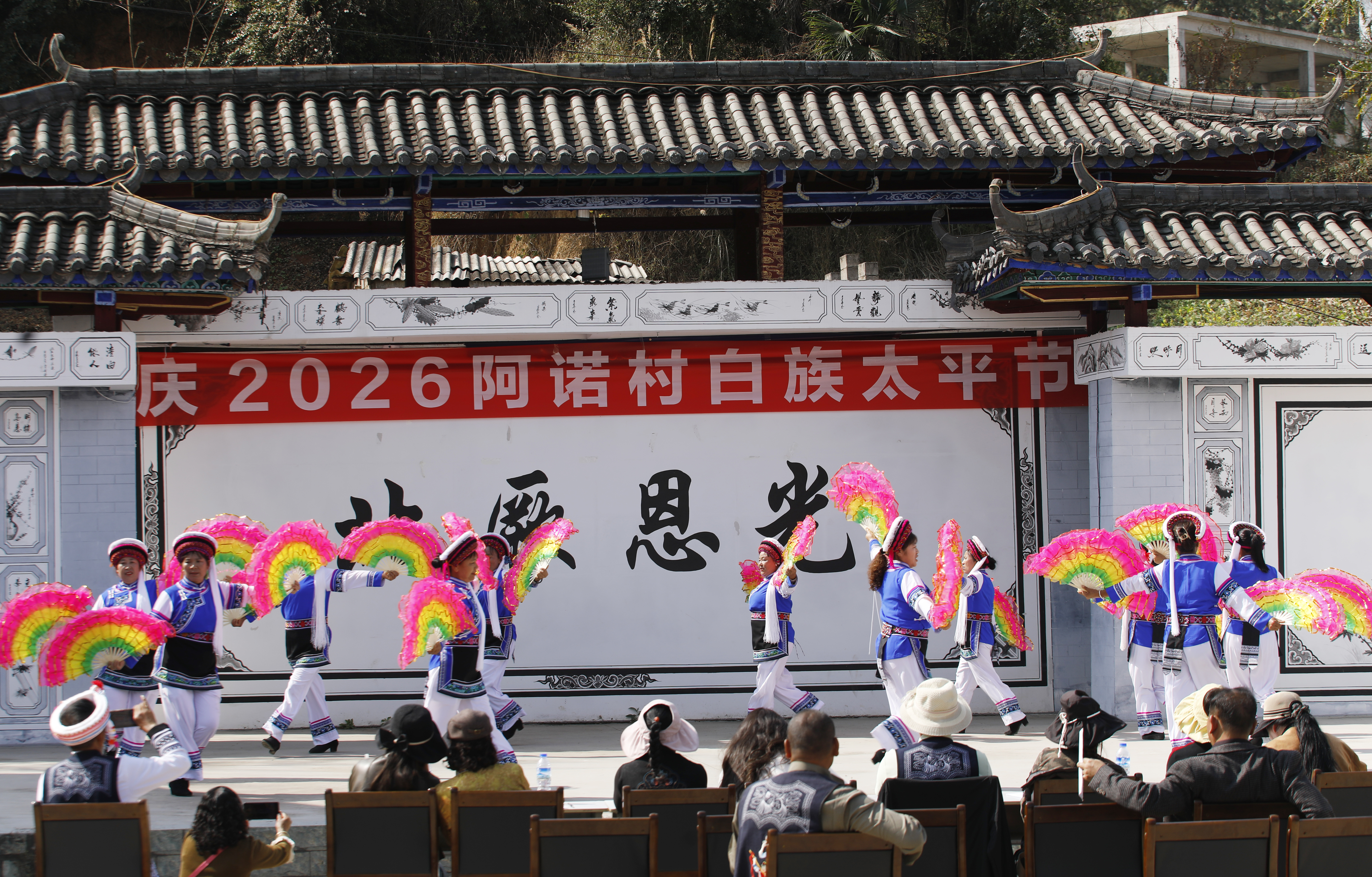 2月24日,文山壮族苗族自治州丘北县八道哨乡阿诺村处处欢歌笑语,游人如织。白族同胞身着绚丽民族服饰,载歌载舞,共同欢庆一年一度的传统节日——“太平节”。这场极具民族风情的节庆活动,也为国家AAAAA级旅游景区普者黑增添了一道绚丽的风景。