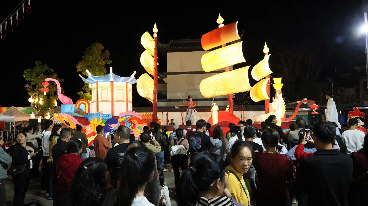 七都古镇以新春灯会为主线,打造沉浸式夜游新场景。万盏彩灯竞相绽放,主题灯组错落有致、流光溢彩,与古韵建筑交相辉映,营造出浓郁喜庆的新春氛围。景区同步推出非遗打铁花、汉服巡游、篝火晚会、文创市集、民俗演艺等多元活动,将观赏、体验、购物、美食融为一体,为游客提供“赏灯、夜游、夜娱、夜购、夜食”一站式休闲体验。璀璨灯火与热闹民俗吸引大量游客前来打卡,七都古镇成为文山市春节期间最具人气的夜游目的地,灯会活动实现销售额420余万元,累计接待游客36.5万人次,有力激活夜间消费潜力。