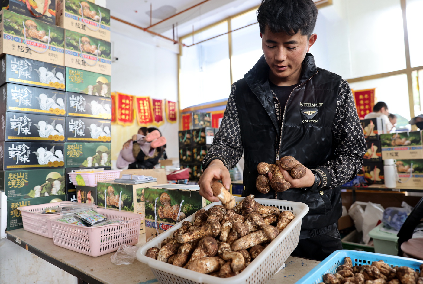 清晨采摘的松茸
