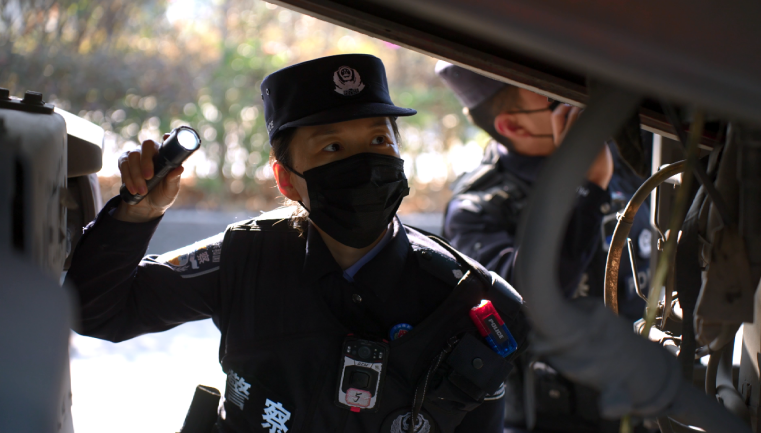 女子侦查组成员对过往车辆进行检查。田洪涛/摄