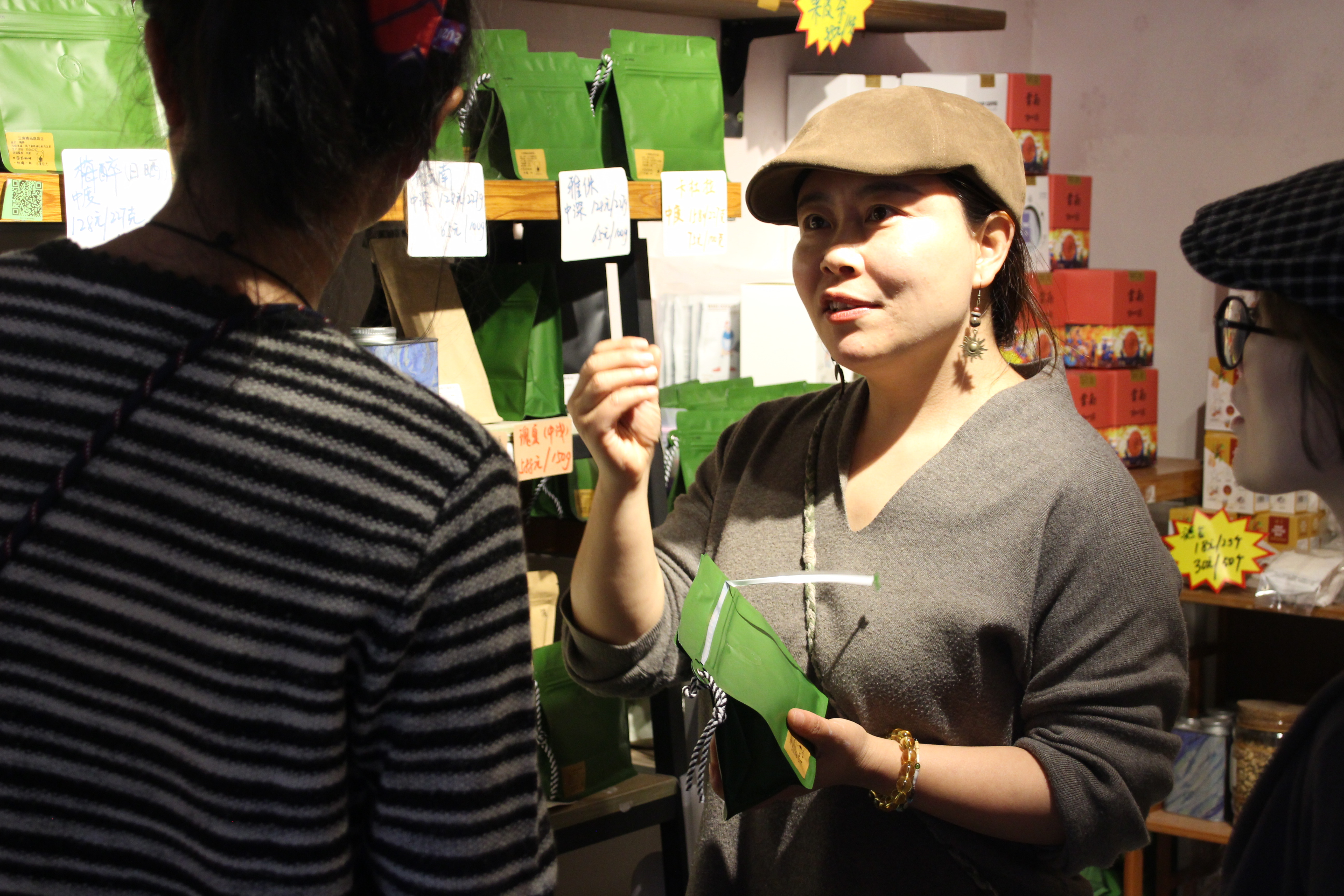 庞现美向客人推荐不同风味咖啡 高玥 摄