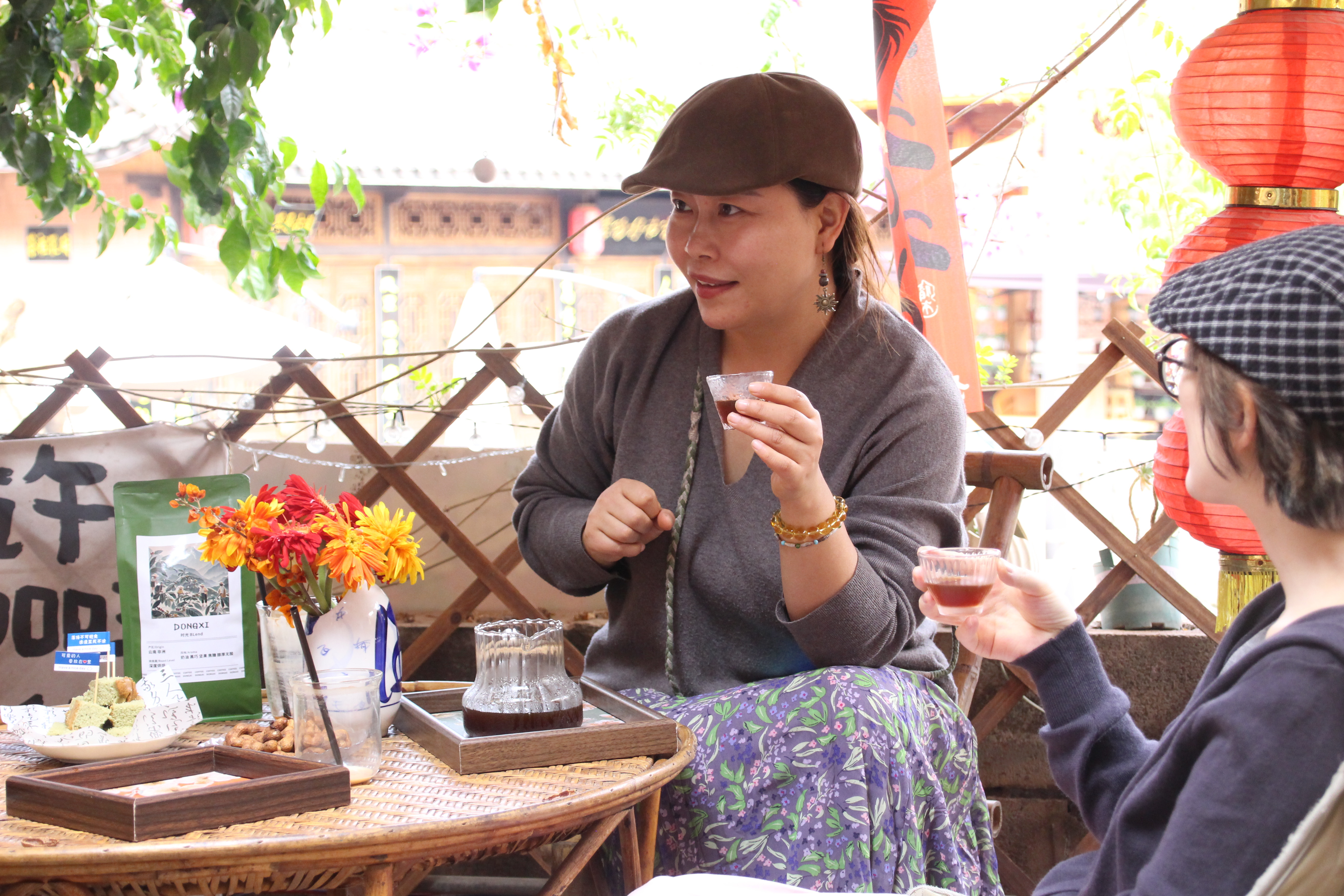 主理人庞现美和客人分享咖啡 高玥 摄