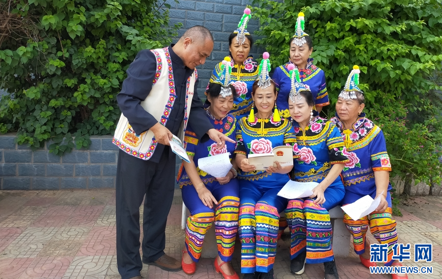 李学平正在为彝族群众普及法律知识(资料图)。新华网发(供图)