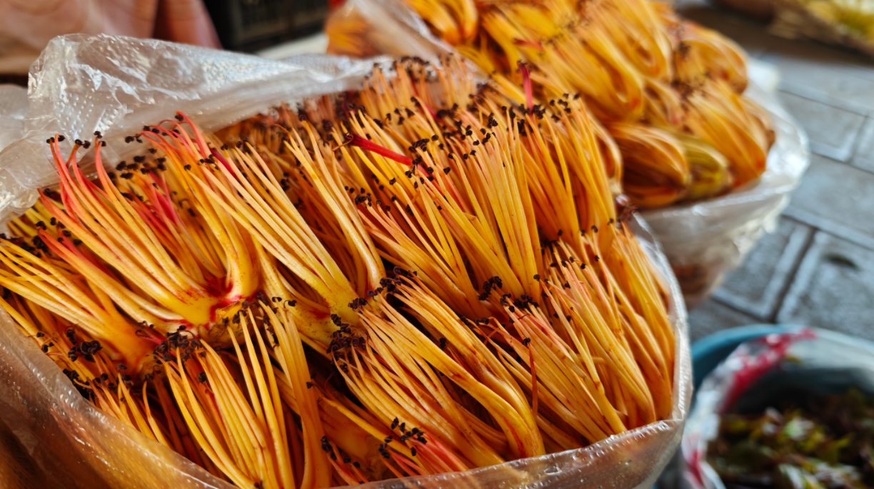 △在农贸市场售卖的攀枝花花蕊。李仁念/摄