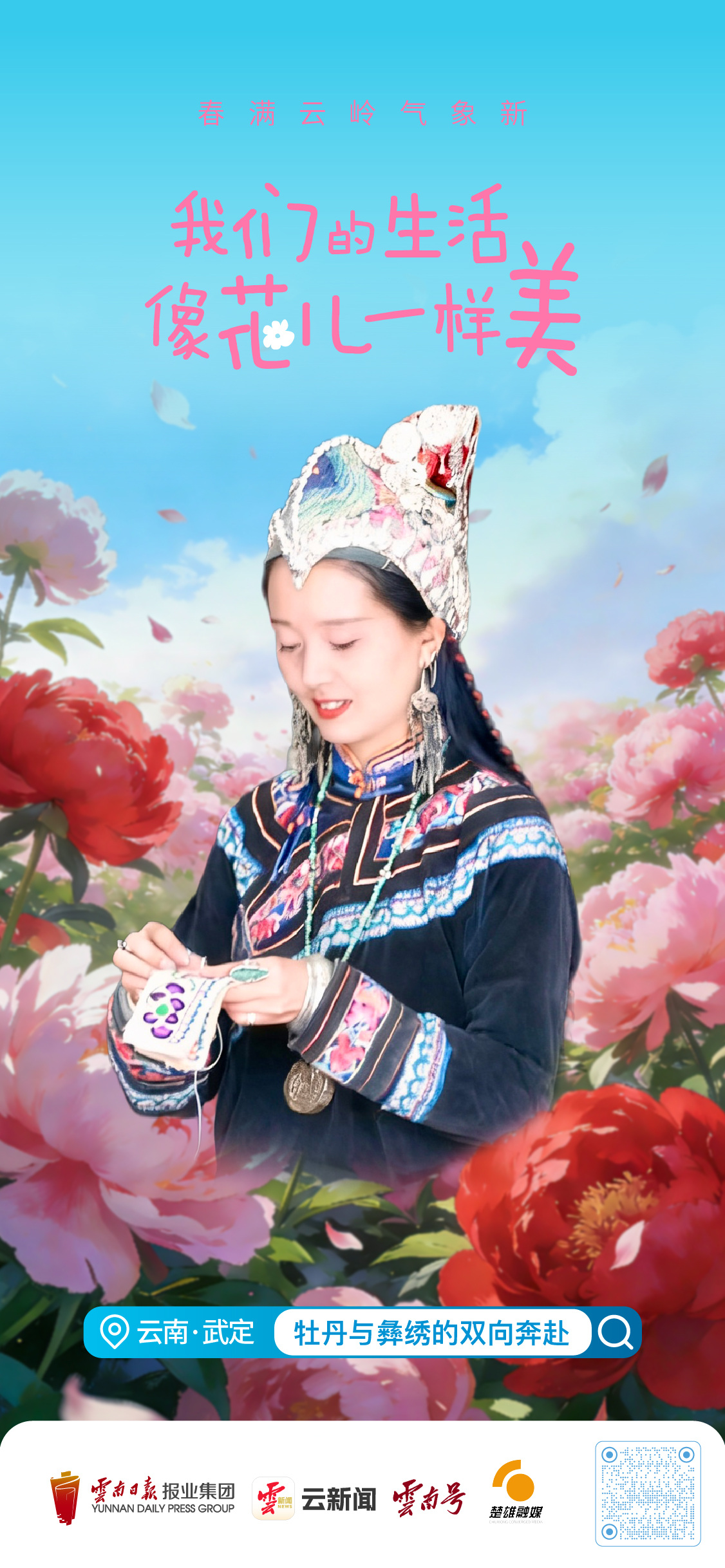 原标题:我们的生活像花儿一样美丨牡丹与彝绣的双向奔赴