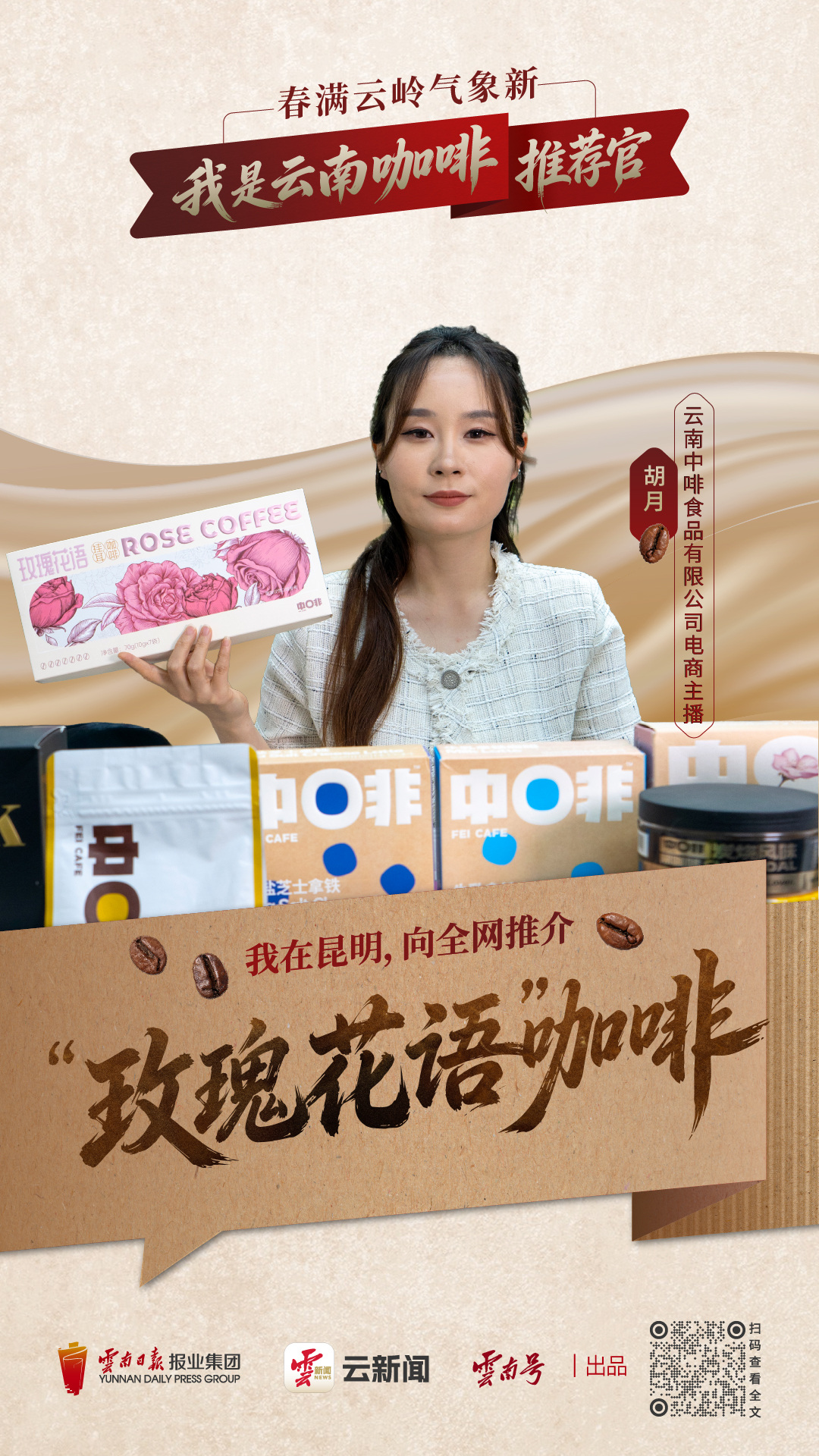 原标题:春满云岭气象新丨我在昆明,向全网推介“玫瑰花语”咖啡