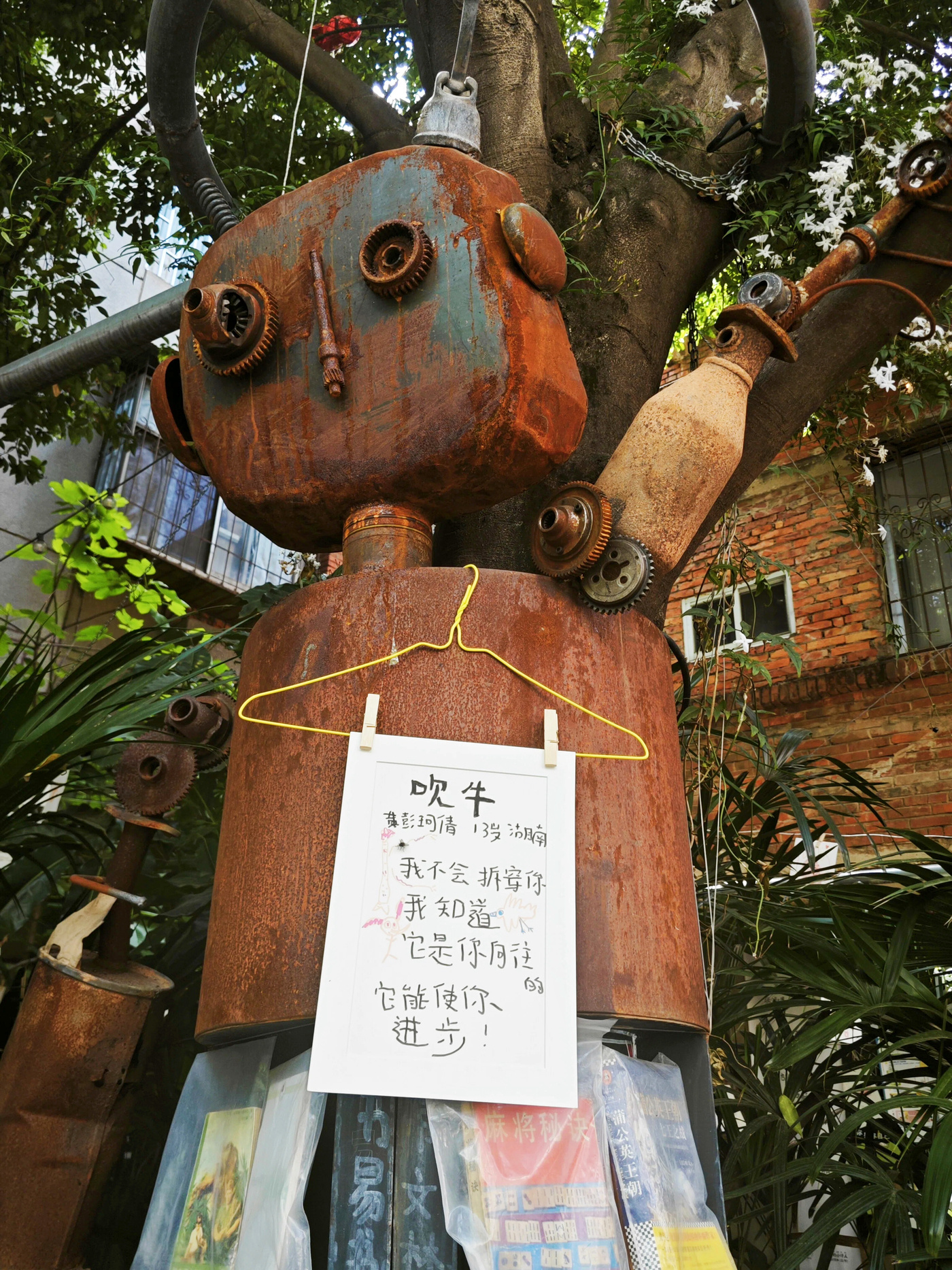近日,一组悬挂在昆明翠湖北路橡皮书店门前的“小孩诗”意外走红。