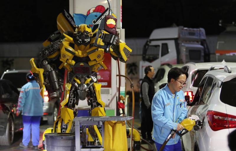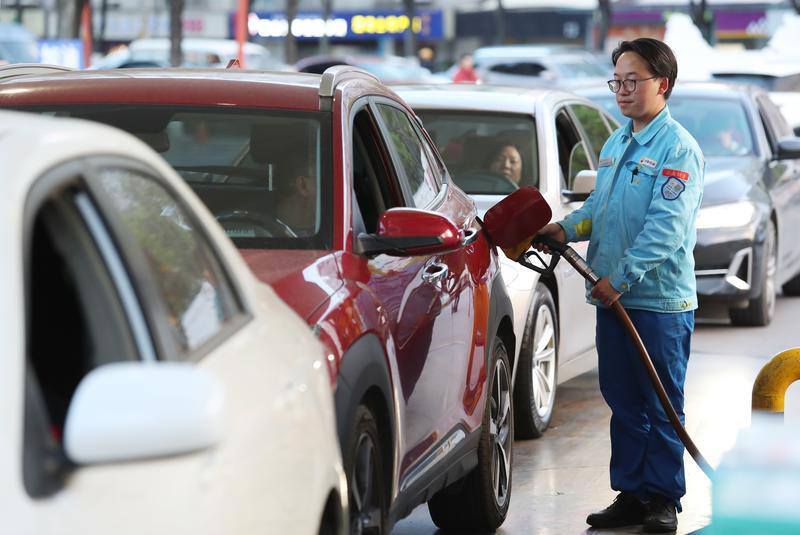 3月23日,在中国石油云南昆明销售分公司西福路加油站,工作人员在为汽车加油。