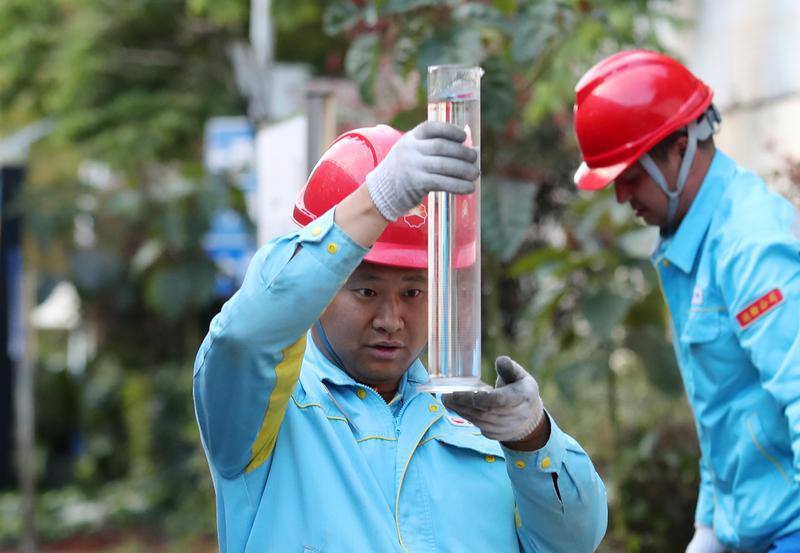 3月23日,在中国石油云南昆明销售分公司西福路加油站,工作人员对调运进站油品进行质量检测。