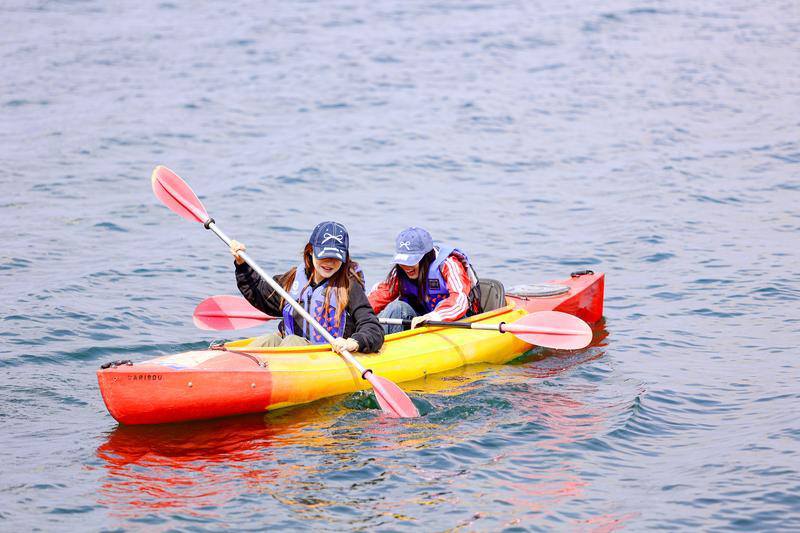 在明星鱼洞风景区,众多市民游客挥桨泛舟,体验皮划艇运动,尽享亲水之乐。