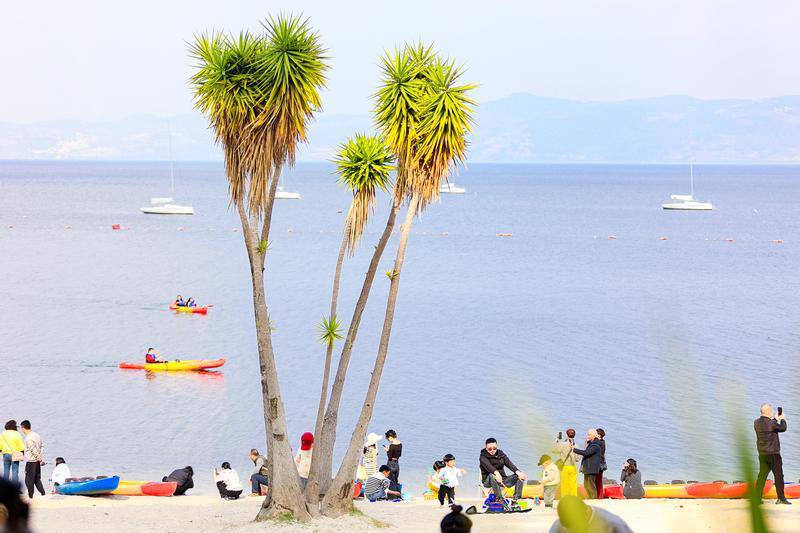 春日暖阳下,澄江抚仙湖水清岸绿,游人如织。