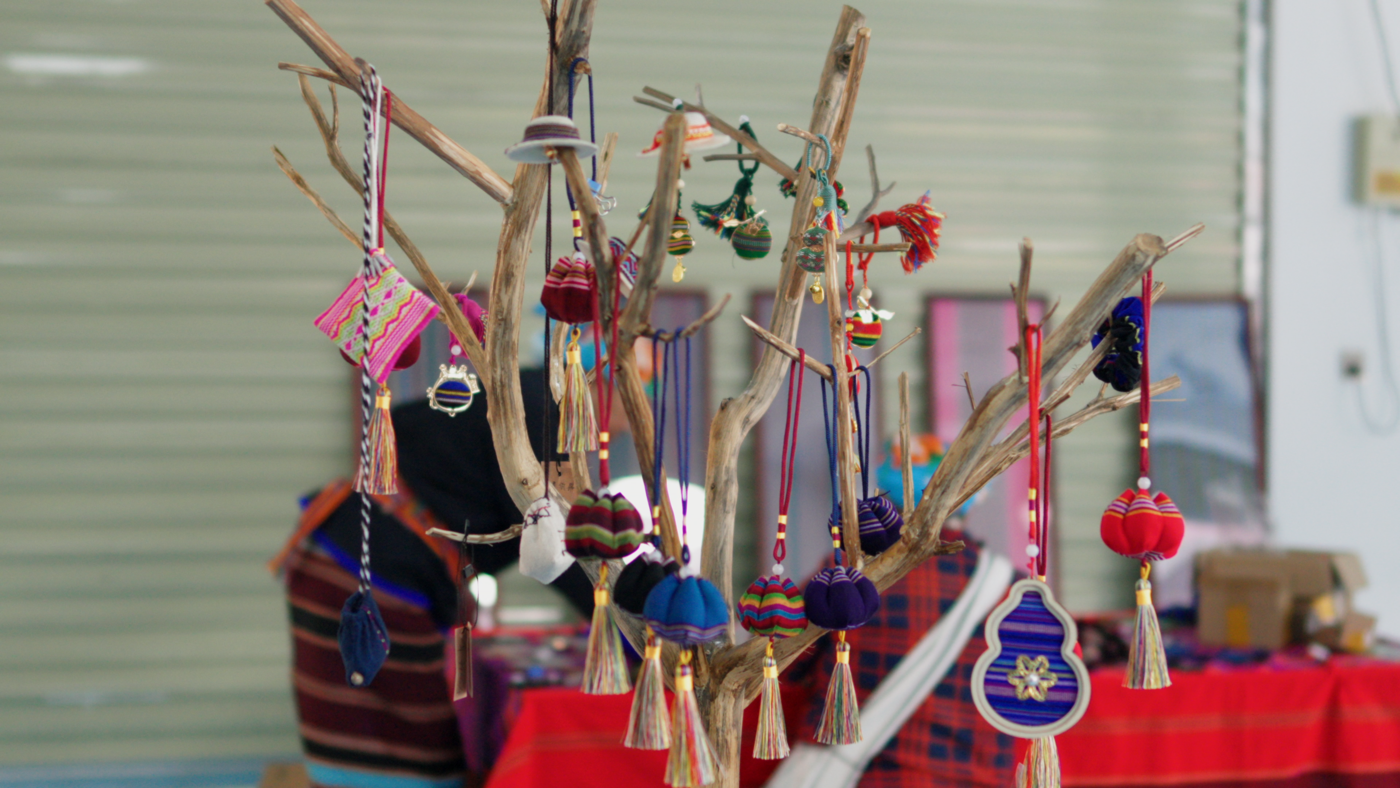 灯光下,她一边剪裁、一边固定,不一会儿,一个小巧精致的佤族织锦胸针便成了形。“只要还能织、还能做,我就会一直干下去。”她说,“不仅是把手艺传下去,更是让大家的日子越过越好。”