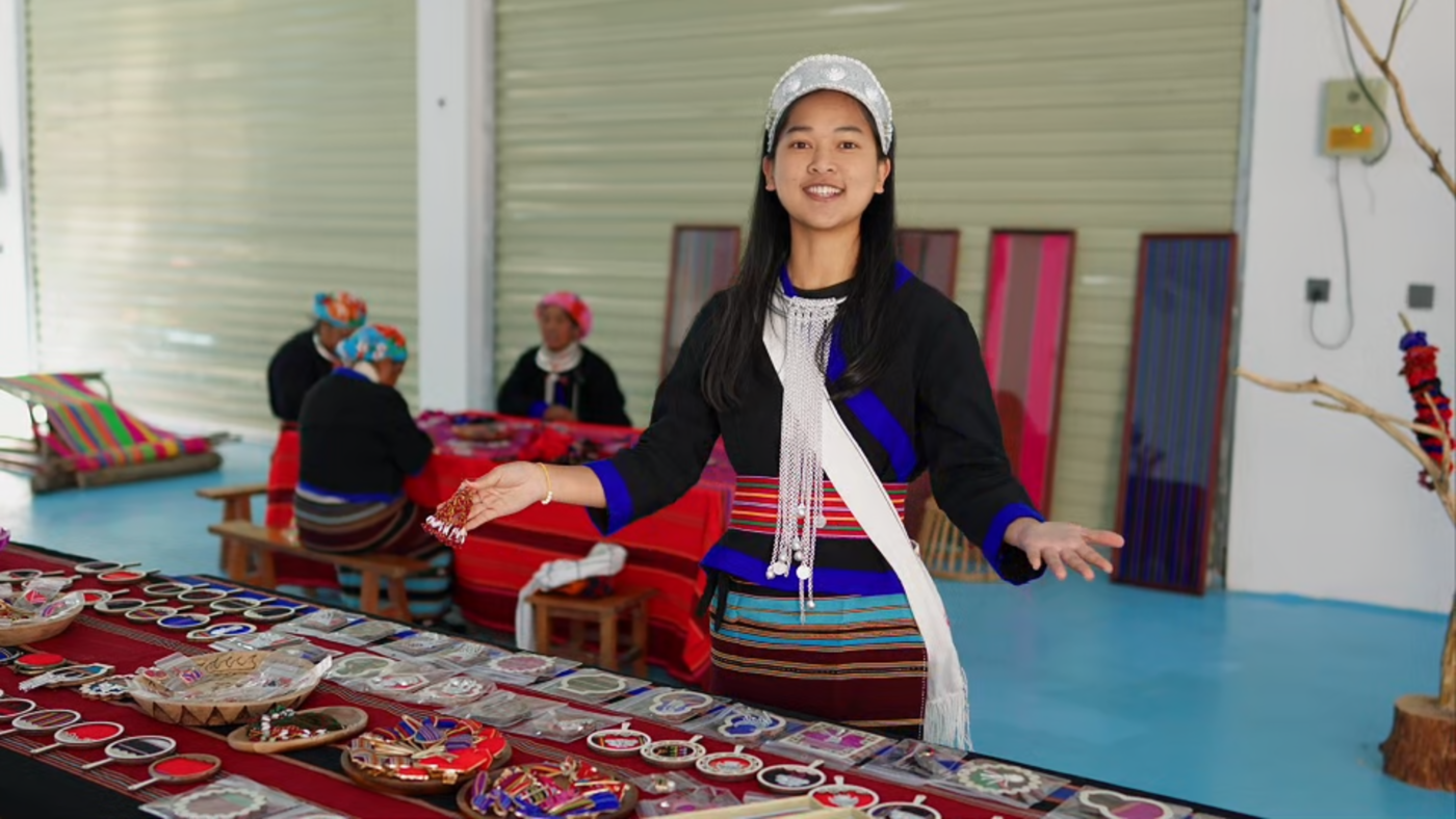 看着这些刚做好的佤族织锦制品,李海波轻轻抚过一枚枚纹样细密的锦饰,语气里多了几分坚定:“这门手艺,是祖辈一针一线传下来的,我们一定要把它守好、用好,让更多人愿意来看一看、摸一摸,也愿意把它带回去。”她望向远处的村寨,语气温和却有力量:“也想通过这些佤族织锦,让远方的人知道,在祖国西南边疆,有一个叫帕良的村子,大家靠着双手,把日子一点点织出来、过出来。”